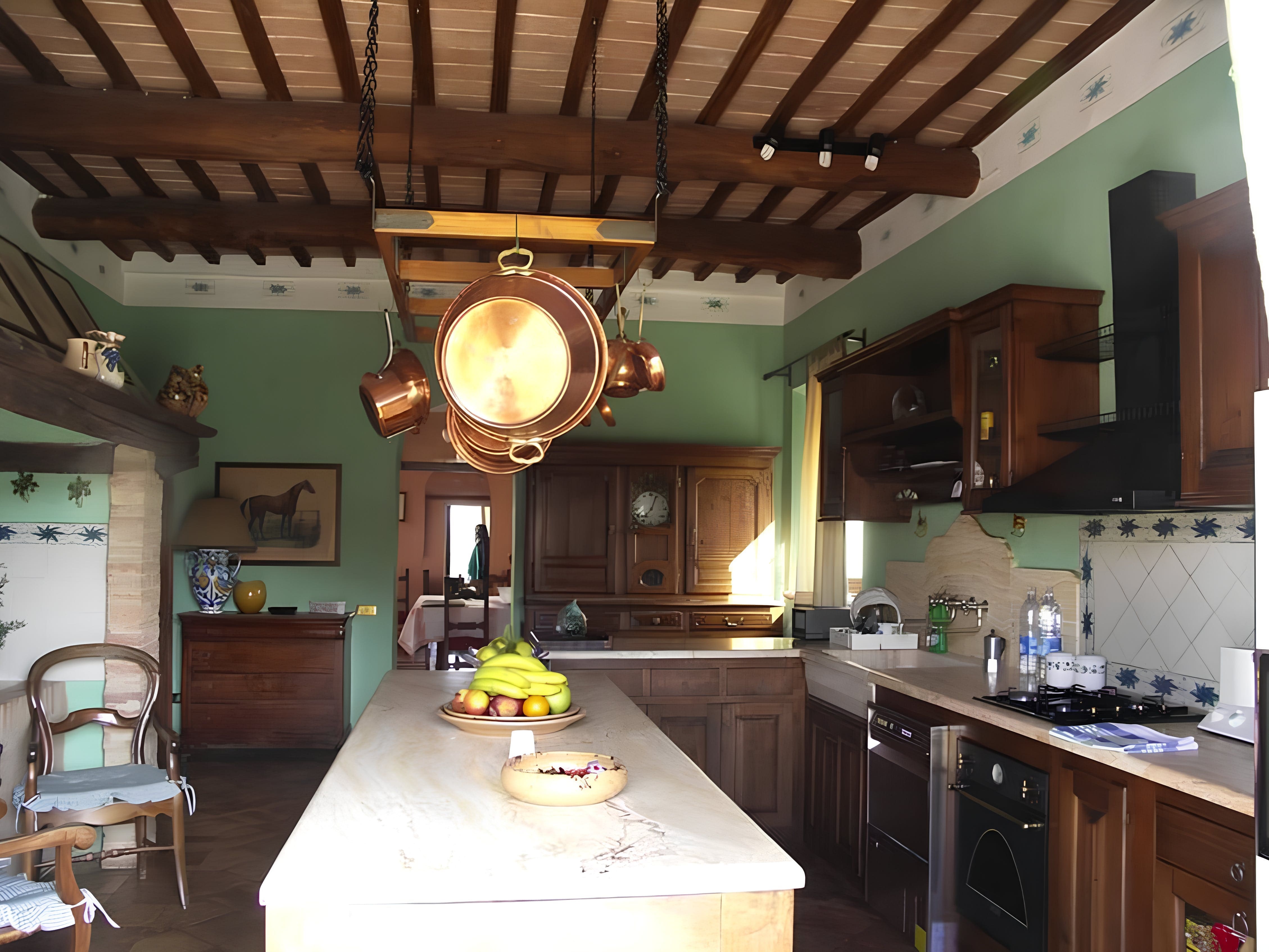 Step inside this magnificent apartment and be welcomed by spacious interiors that seamlessly combine traditional Tuscan charm with modern amenities. With nine beautifully appointed bedrooms and six bathrooms, this property comfortably accommodates up to 18 guests. The main house and separate annex, featuring two double ensuite bedrooms, provide privacy and flexibility for larger groups. The living spaces boast classic decor, creating an inviting atmosphere, while the fully equipped kitchen allows for delightful culinary experiences.