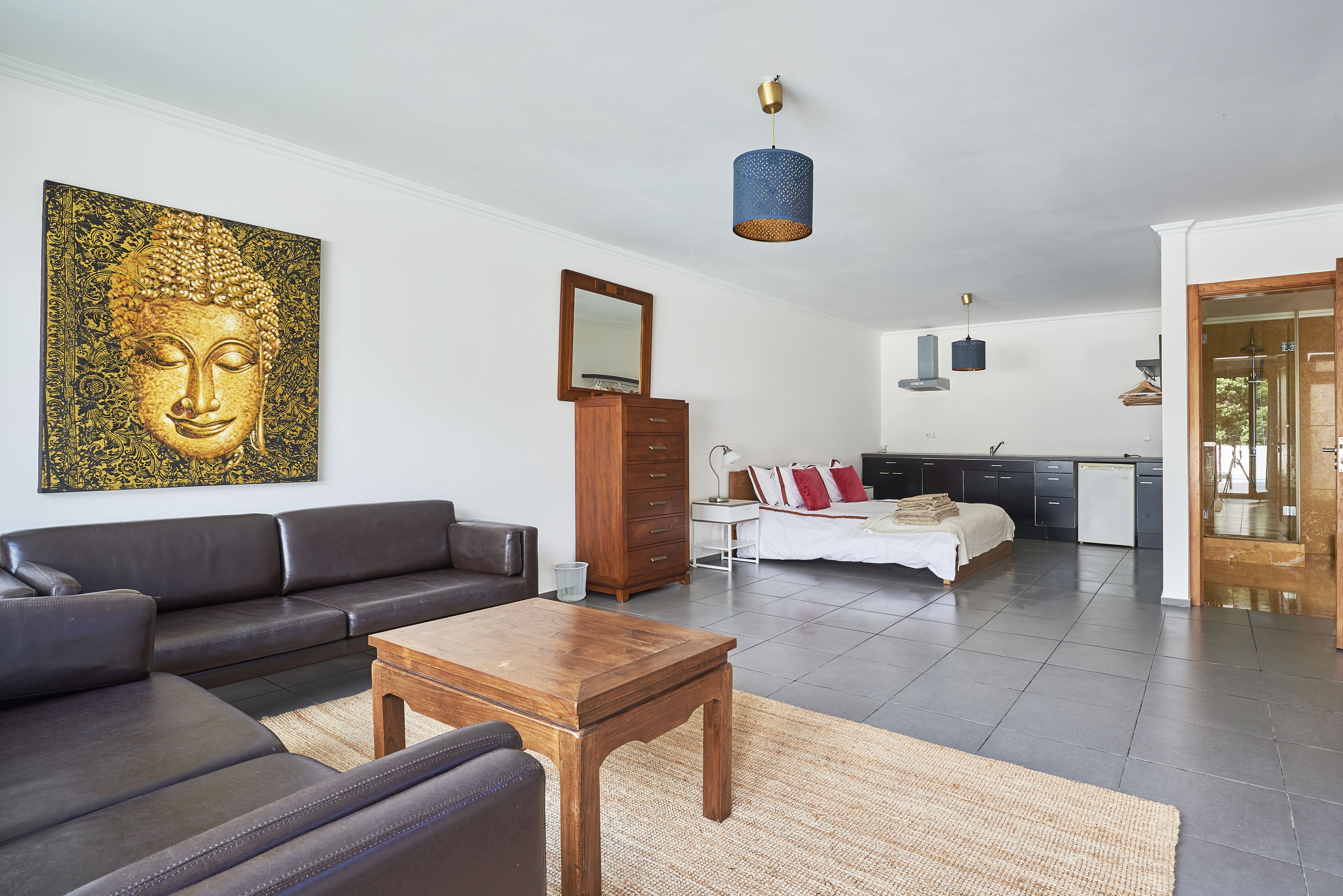 The apartment’s outdoor spaces are nothing short of spectacular. The upper terrace provides a perfect spot for al fresco dining while enjoying the stunning seaviews. The lower deck is home to a refreshing swimming pool, inviting you to take a dip and unwind. The surrounding gardens offer a serene environment, making it an ideal setting for relaxation.