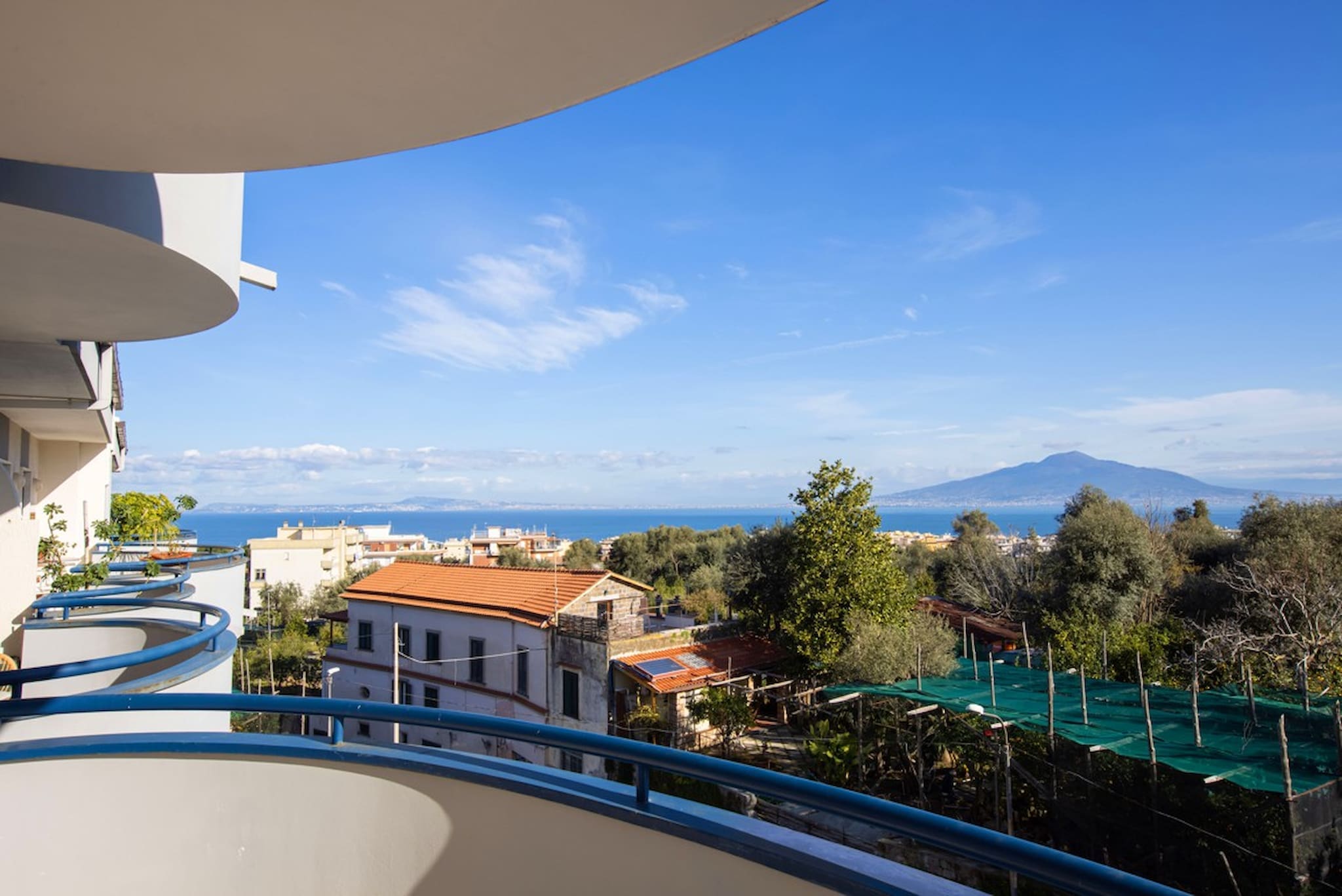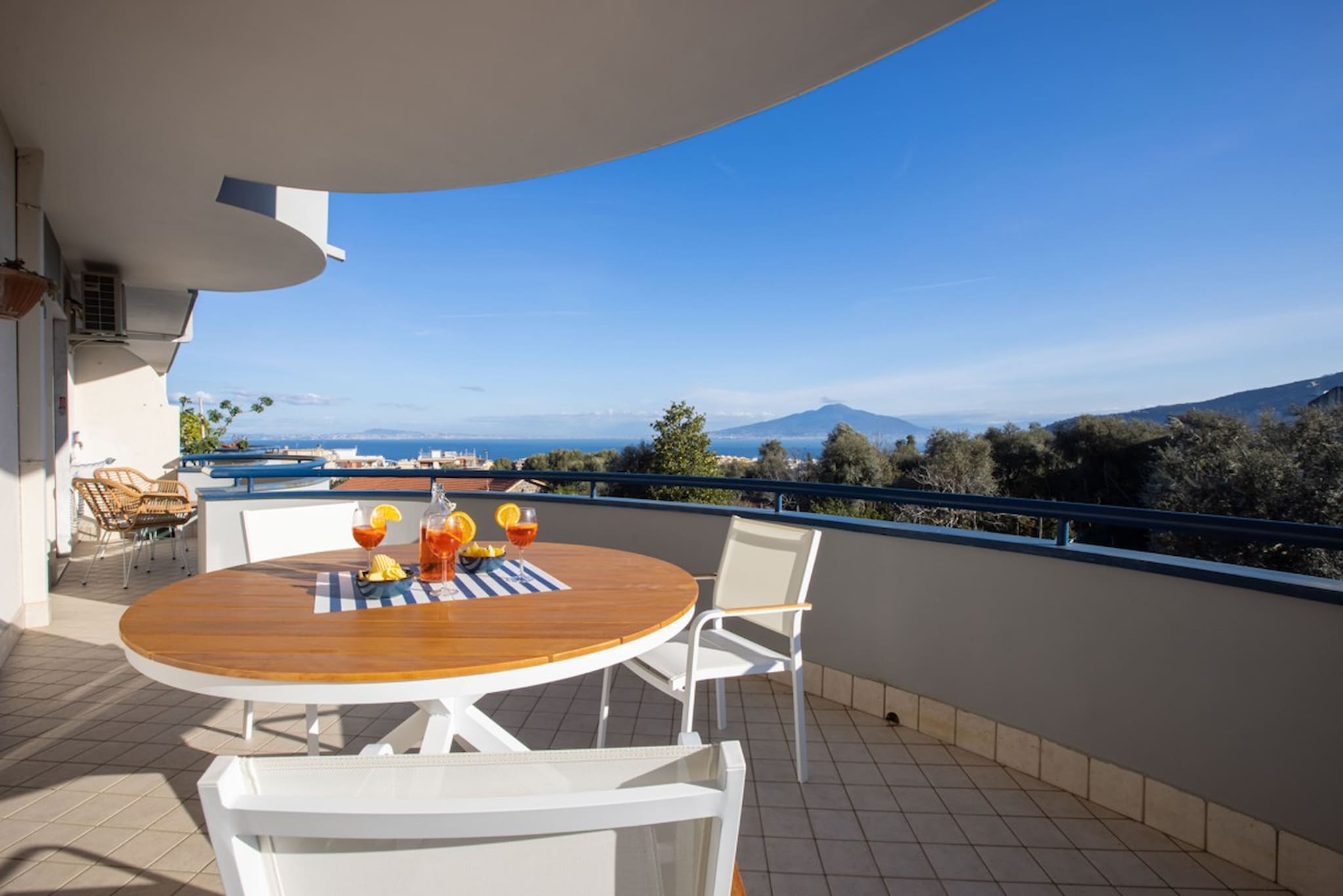 A: The standout feature of this apartment is its breathtaking terrace views of the sea and Mount Vesuvius.