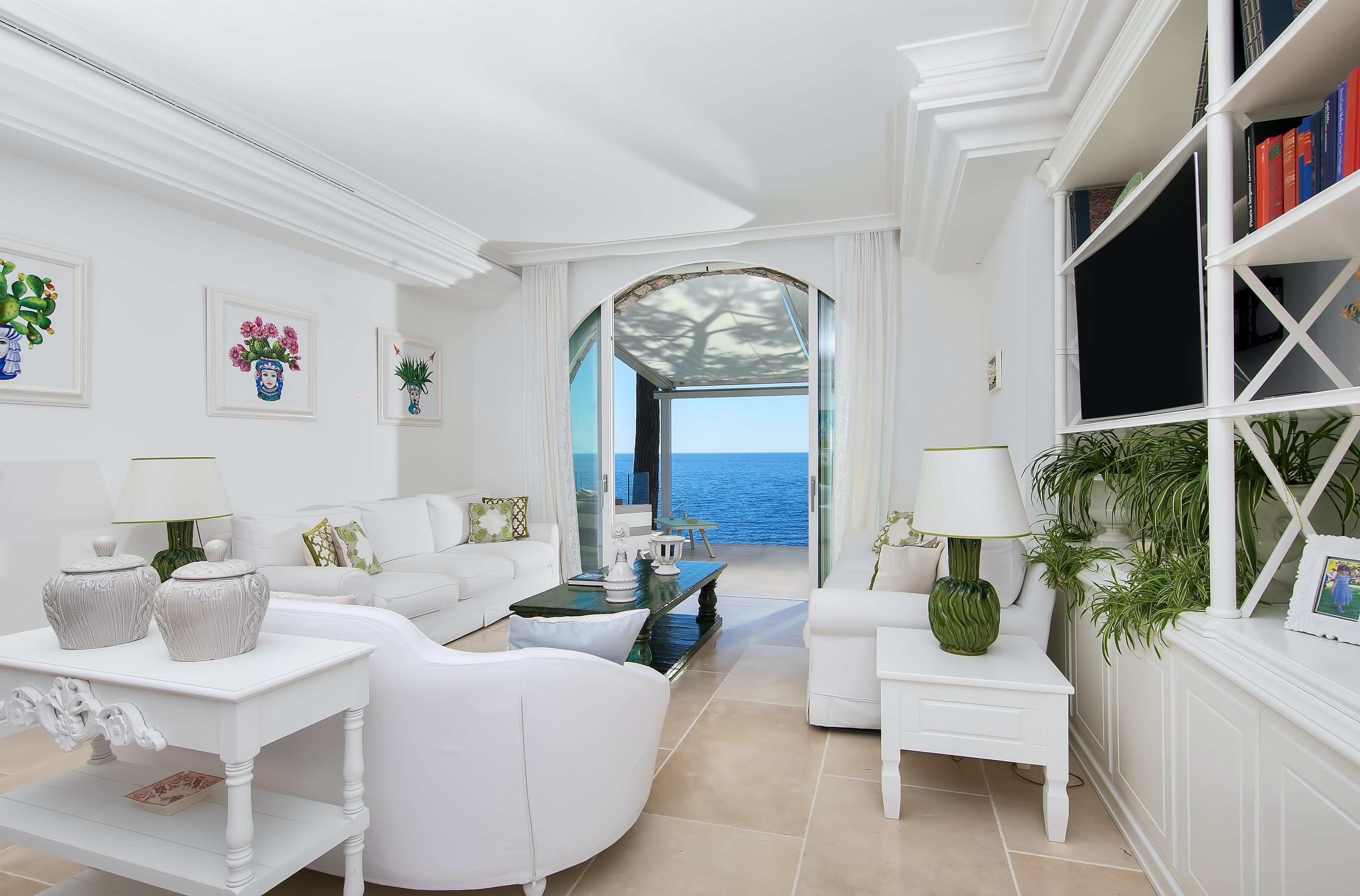 The apartment’s outdoor spaces are nothing short of spectacular. An infinity pool offers a serene spot to relax while taking in panoramic sea views. Multiple terraces provide perfect settings for alfresco dining or sunbathing. The lush gardens surround the property, creating a private oasis just moments from the vibrant town center.