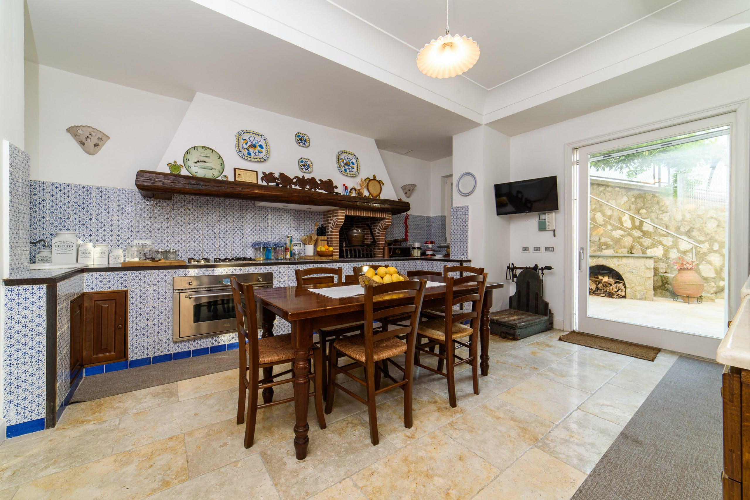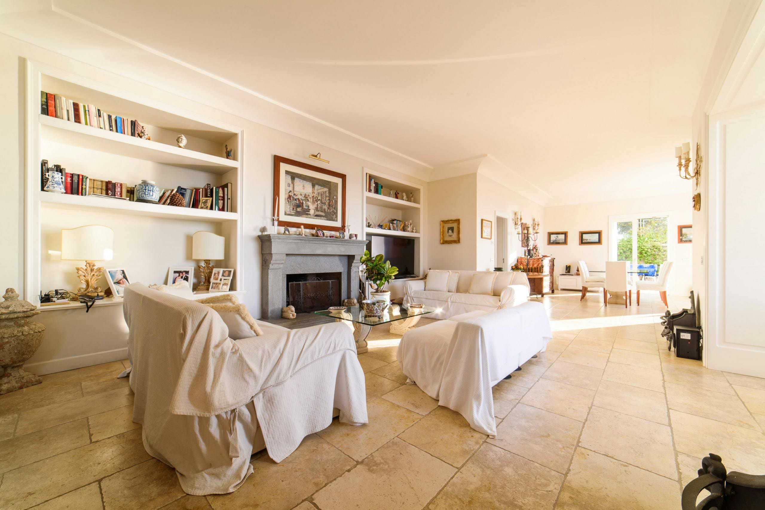 Step inside to discover a spacious and elegant interior, where traditional Italian decor meets modern comfort. The apartment accommodates up to nine guests across five beautifully appointed bedrooms, each with its own en-suite bathroom. The living spaces are bright and airy, featuring large windows that flood the rooms with natural light. The fully equipped kitchen is perfect for preparing local delicacies, and the open-plan dining area ensures you can enjoy meals together in style.