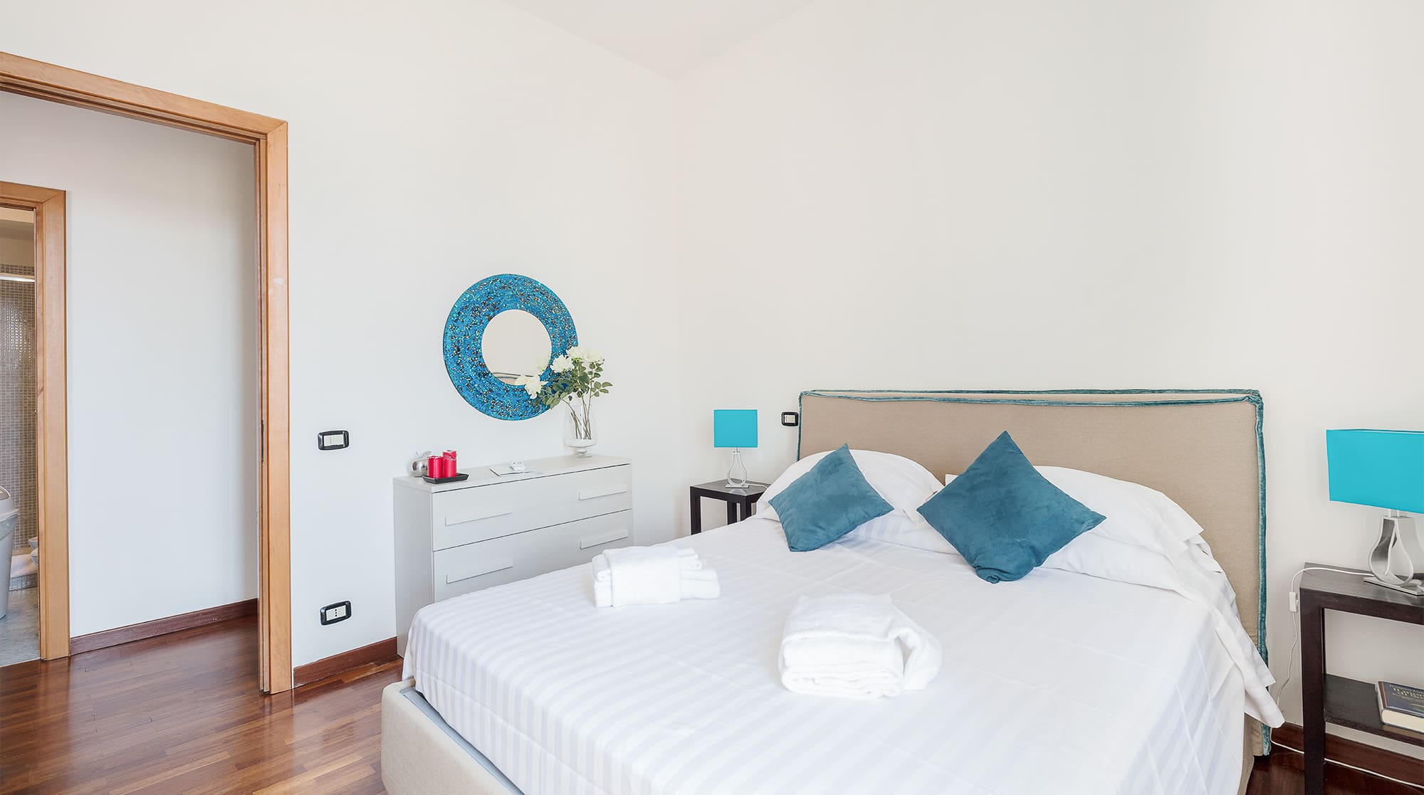 The apartment comfortably accommodates up to four guests, featuring two bedrooms and two bathrooms. Note that while the lift reaches the fourth floor, a short walk up to the fifth is required. Pets and children are welcome, making this an excellent choice for family trips. For more options, browse our luxury villa rentals in Italy.