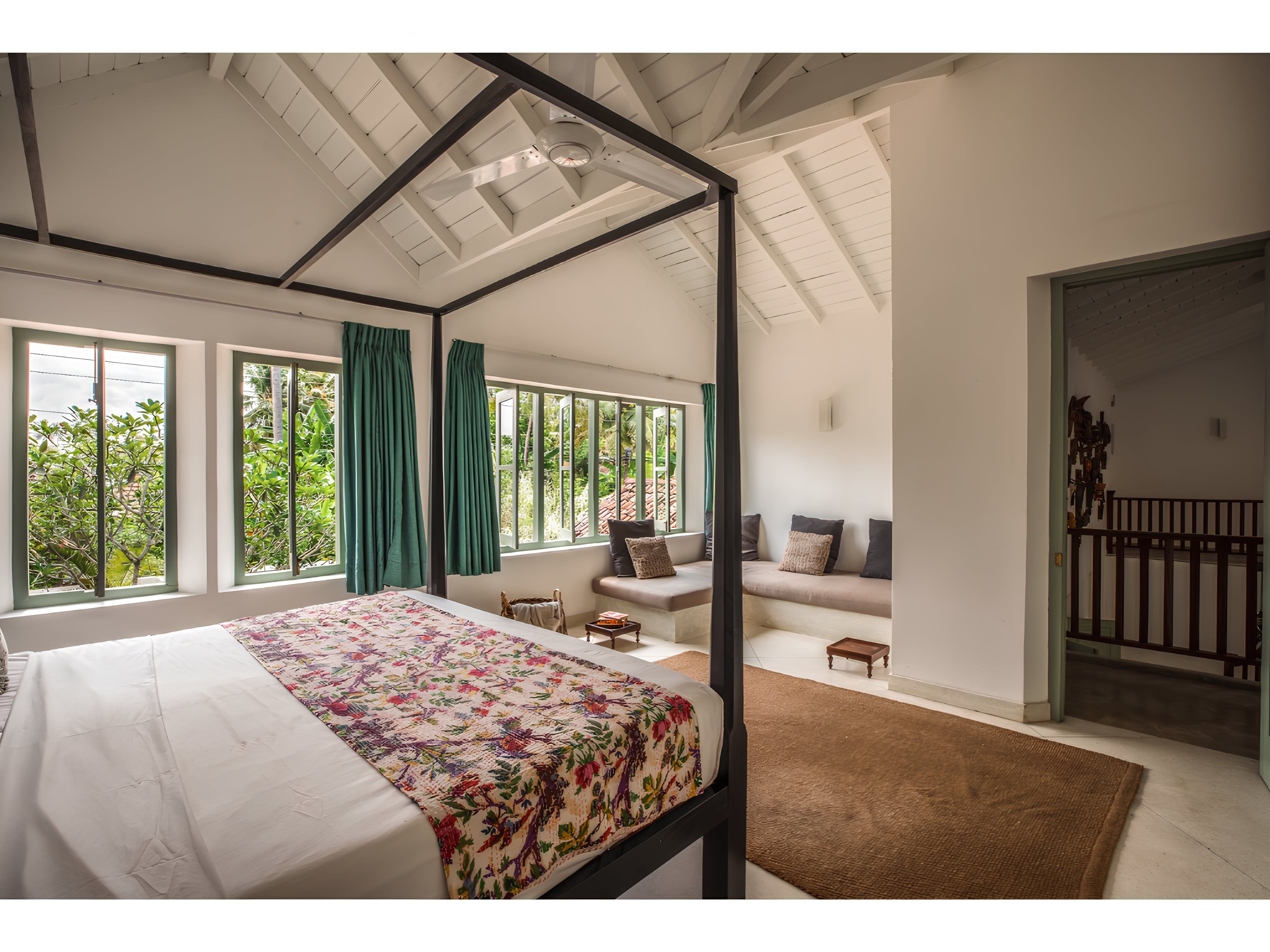 With six bedrooms and six bathrooms, this apartment comfortably sleeps 12 guests. Daily housekeeping is included, ensuring a seamless stay. For those with reduced mobility, a ground-floor bedroom and bathroom are available. Explore our luxury villa rentals in Sri Lanka for more properties.