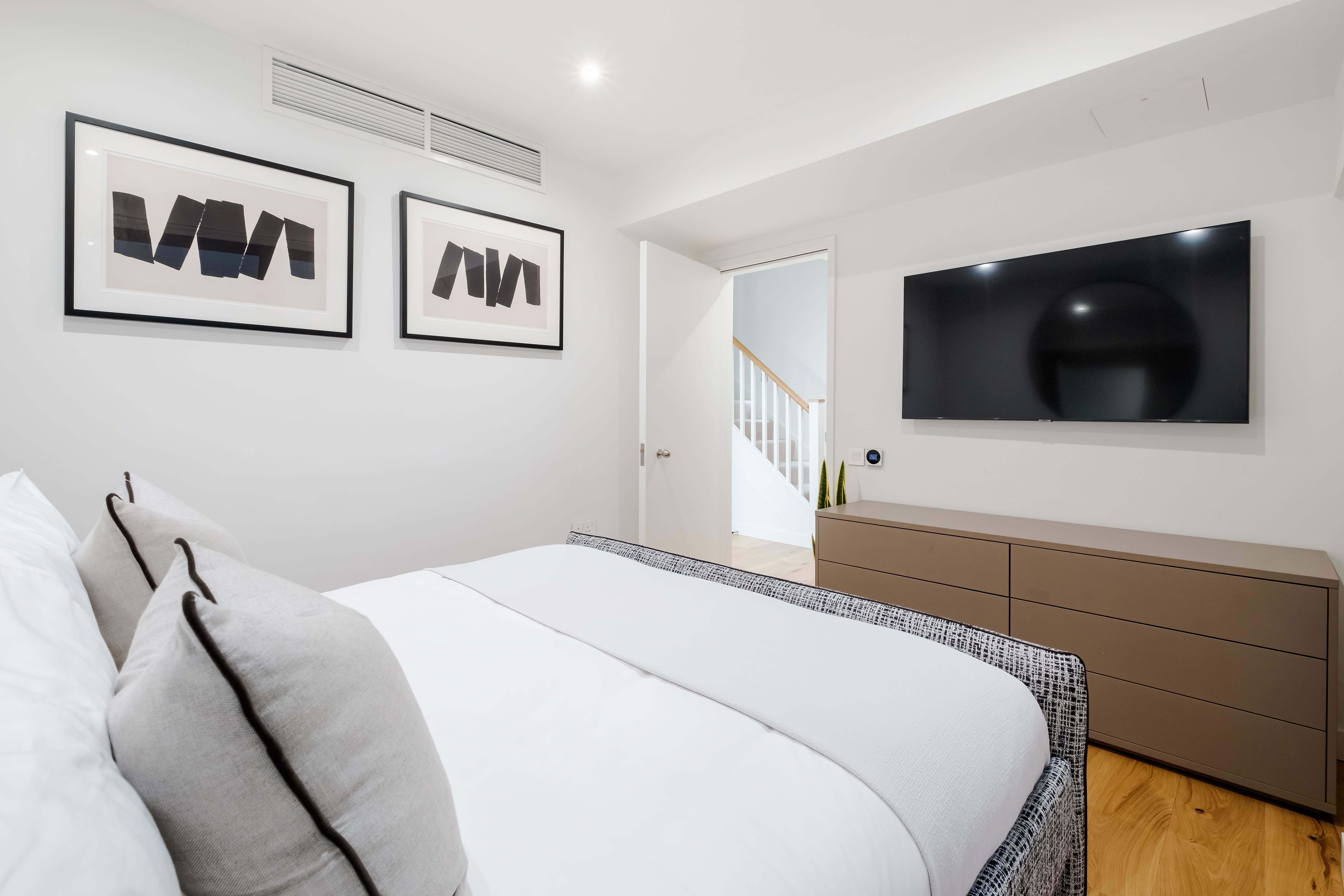 Step into a world of sophistication as you enter this St. James’s apartment. The open-plan living and dining area exudes a sense of calm with its contemporary design and muted color palette. Large windows flood the space with natural light, creating a bright and inviting atmosphere. The modern kitchen is fully equipped with high-end appliances, making it a pleasure to prepare meals. Each of the three bedrooms is a sanctuary of comfort, featuring plush bedding and en-suite bathrooms. The ground floor offers a bedroom and bathroom, ideal for guests with reduced mobility.