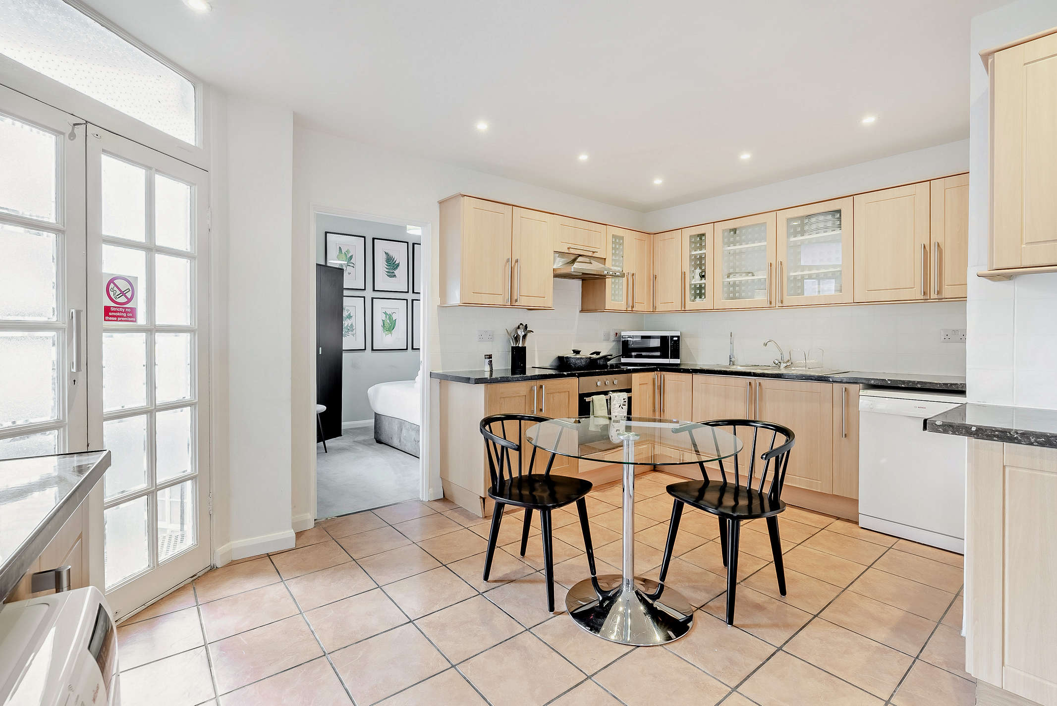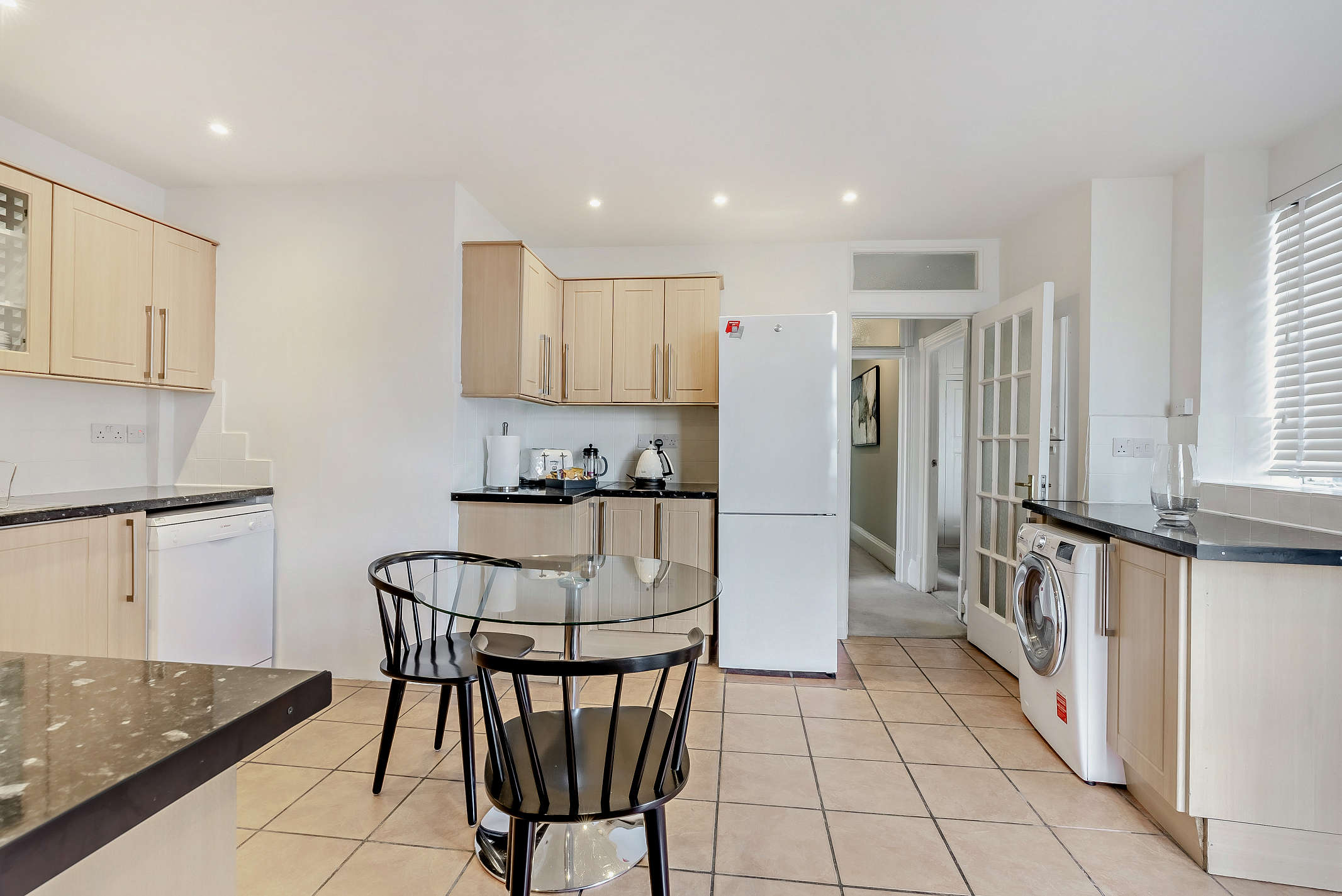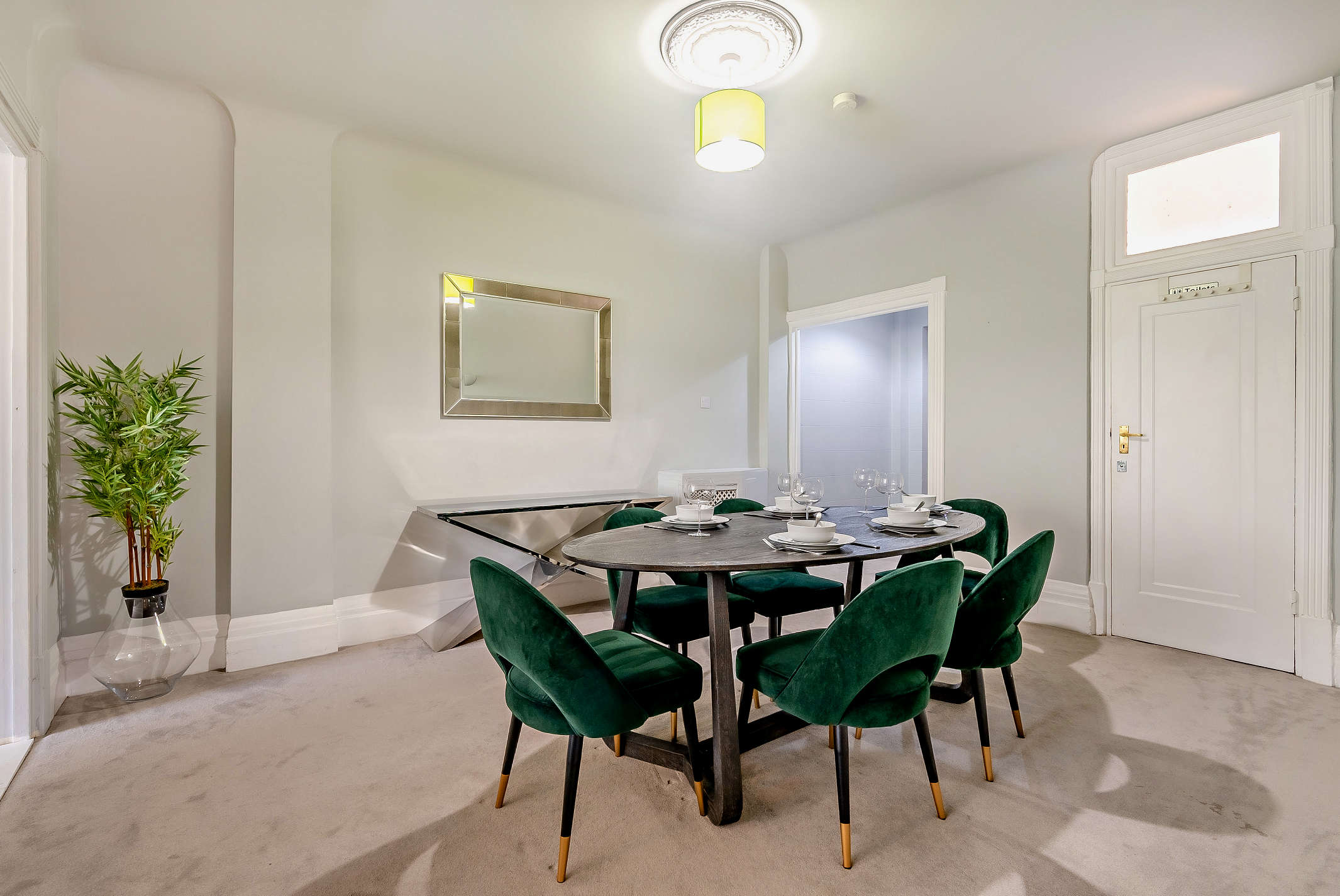 The flat accommodates up to 12 guests across its six bedrooms and two bathrooms. While the dining table may not seat everyone at once, the spacious living area ensures a comfortable gathering space. An on-site building manager is available to assist with any needs, and a welcome pack with local information is provided. One well-behaved dog is welcome. For more options, browse our luxury villa rentals in United Kingdom.