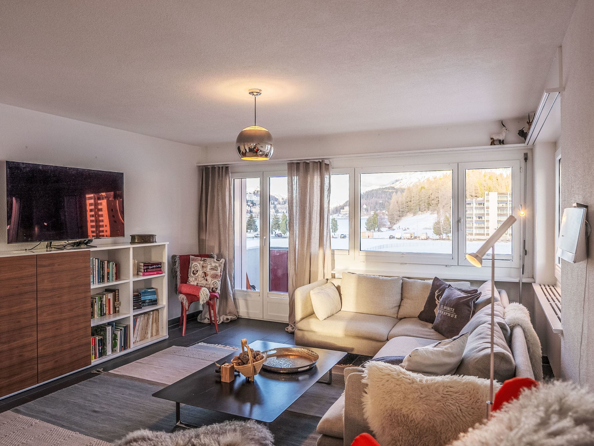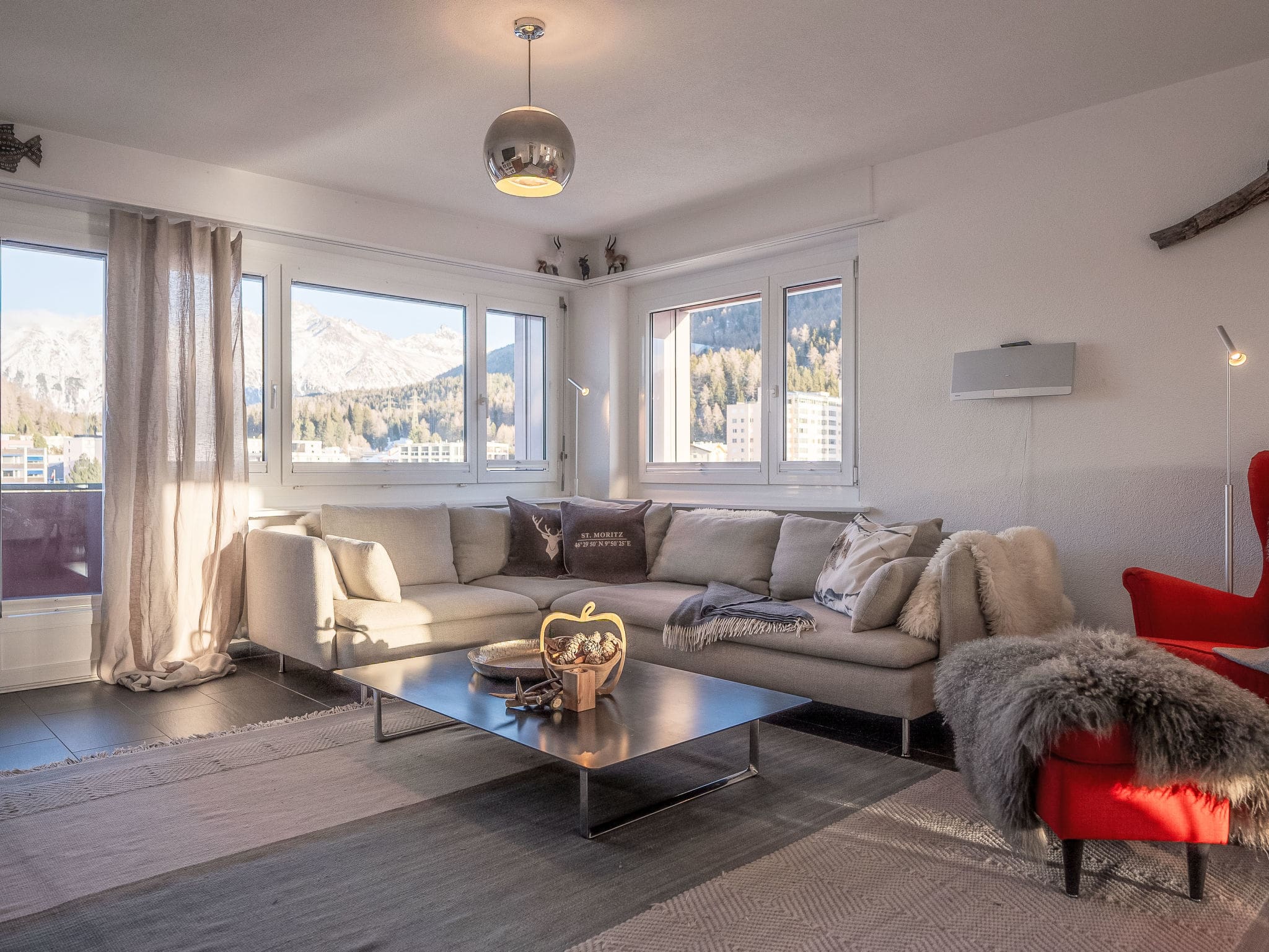 Experience the pinnacle of Alpine elegance at this luxury St. Moritz apartment rental, perfectly positioned just 300 metres from the prestigious resort centre and the pristine waters of Lake St. Moritz. This sophisticated 105-square-metre retreat on the third floor of Casa Polo offers panoramic mountain views and seamless access to world-class skiing, dining, and the legendary glamour of the Engadin Valley.