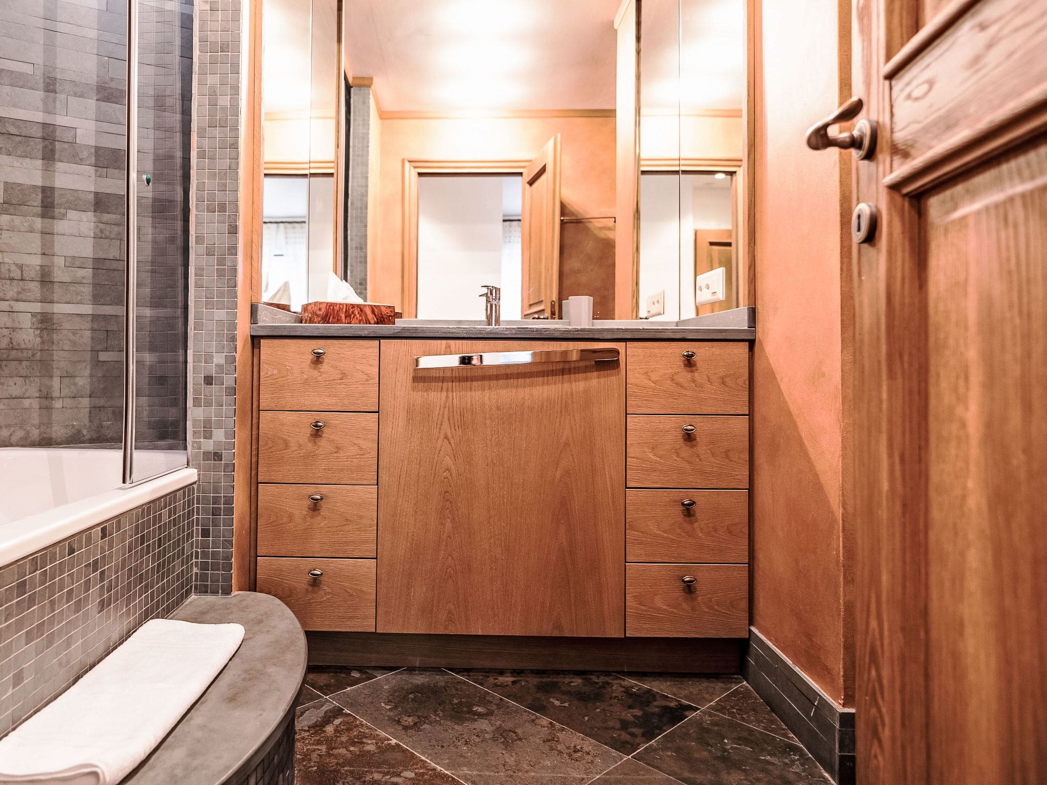 Occupying the top floor of the Chesa Sonnalpine B building, this thoughtfully appointed 95-square-metre residence welcomes guests with bright, tasteful interiors that showcase the beauty of the surrounding landscape. The open-plan living and dining area features contemporary furnishings and a flat-screen television, while floor-to-ceiling windows frame the spectacular mountain panorama. Parquet flooring throughout adds warmth and Alpine authenticity to the modern design.