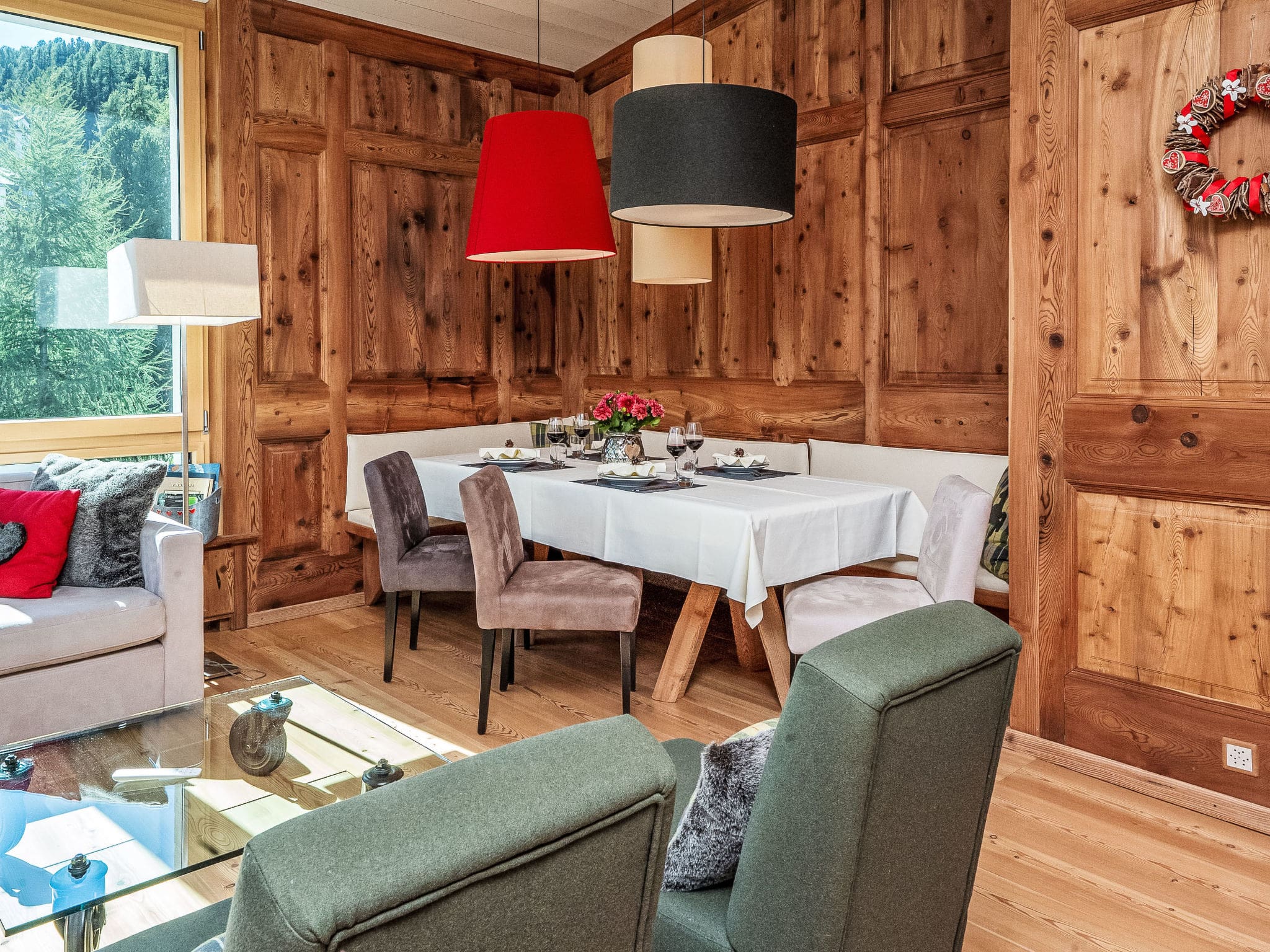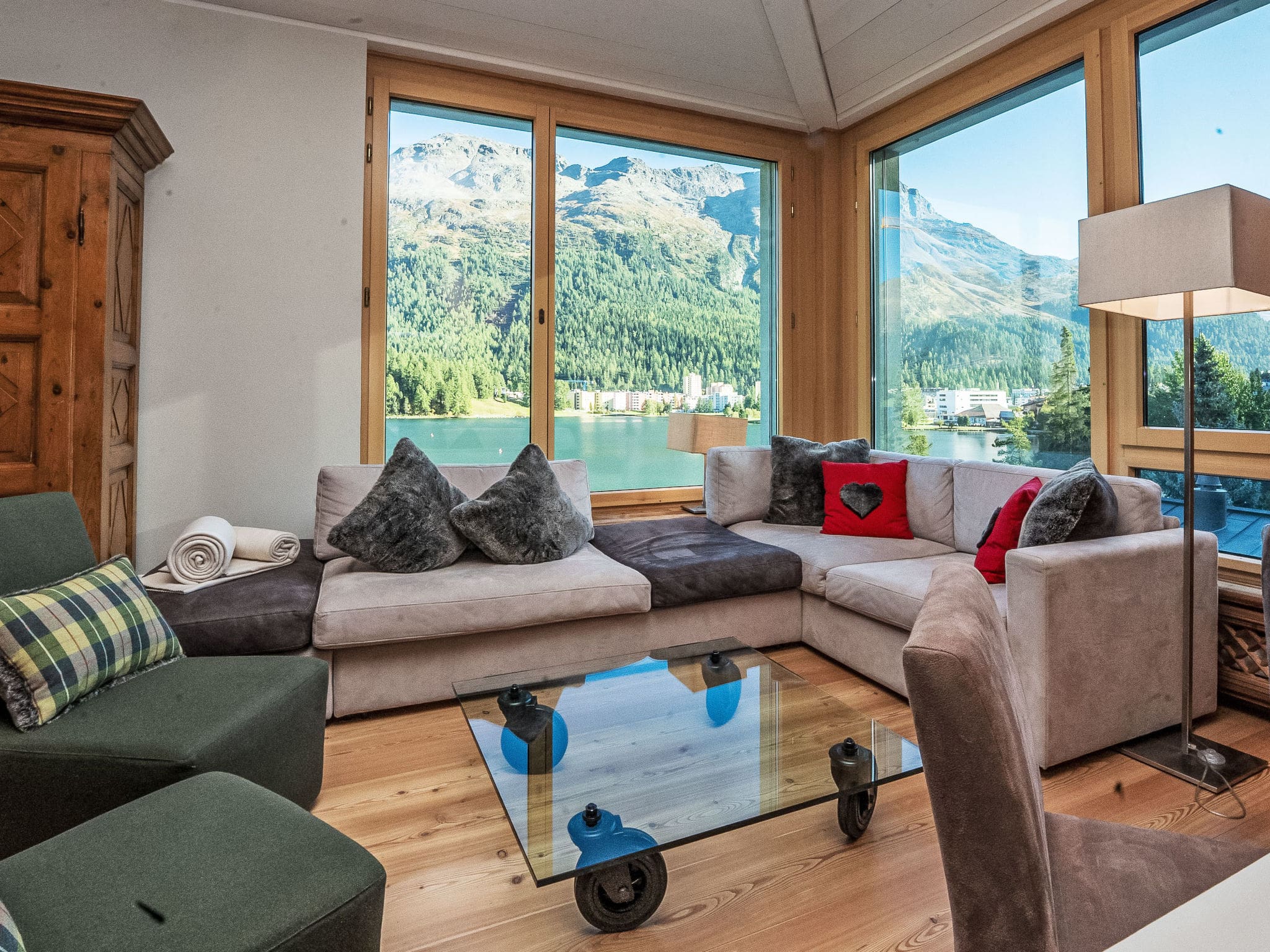The apartment is located within St. Moritz itself, just 500 meters from shops and supermarkets, and 800 meters from restaurants and bakeries in the town center.