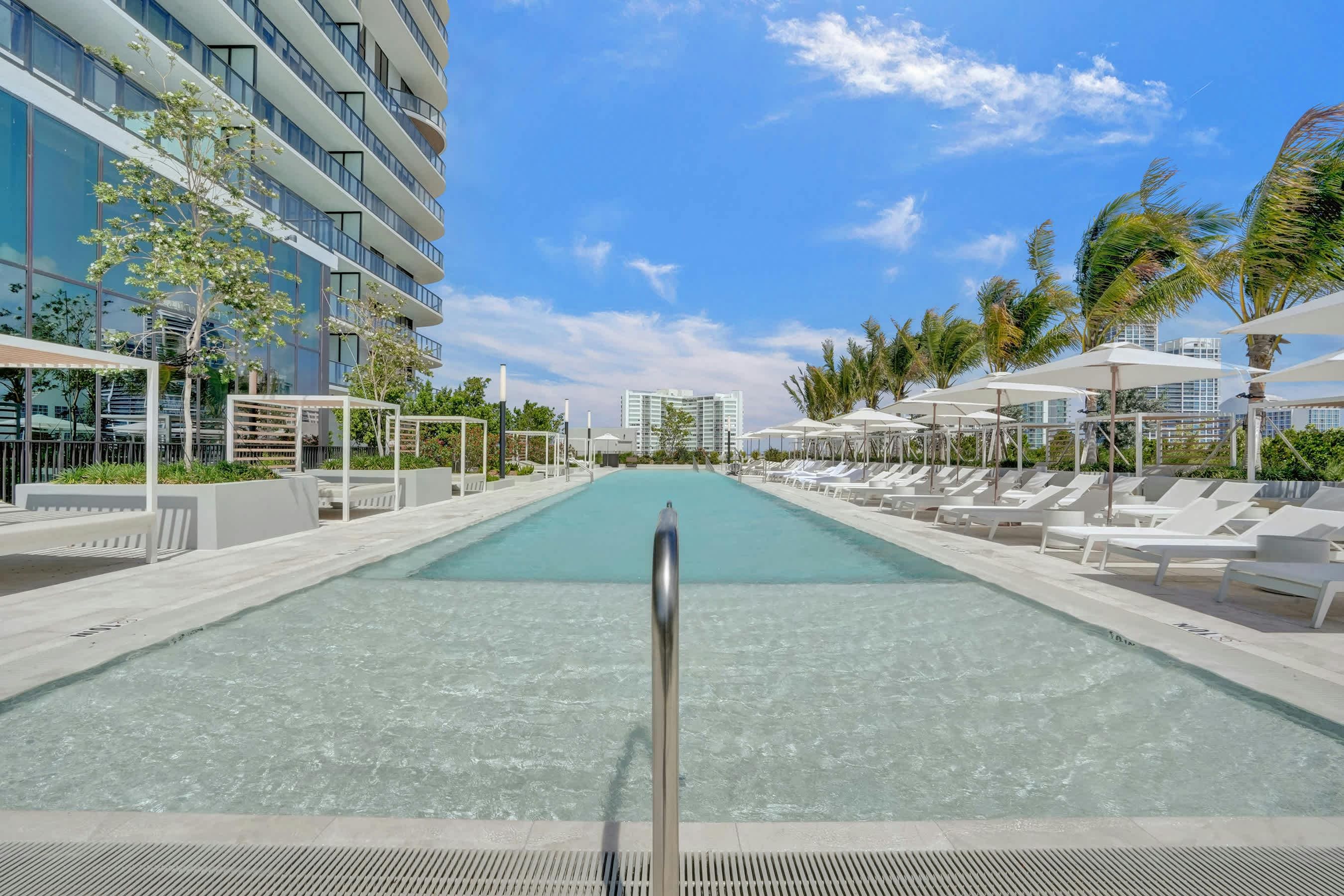 The outdoor area is a haven for relaxation, featuring a shared swimming pool surrounded by lush landscaping. Enjoy a barbecue on the terrace or take a short walk to the nearby beach club, where you can unwind on the complimentary chairs provided. The Miami-Dade County location ensures you’re never far from the vibrant culture and nightlife of the area.