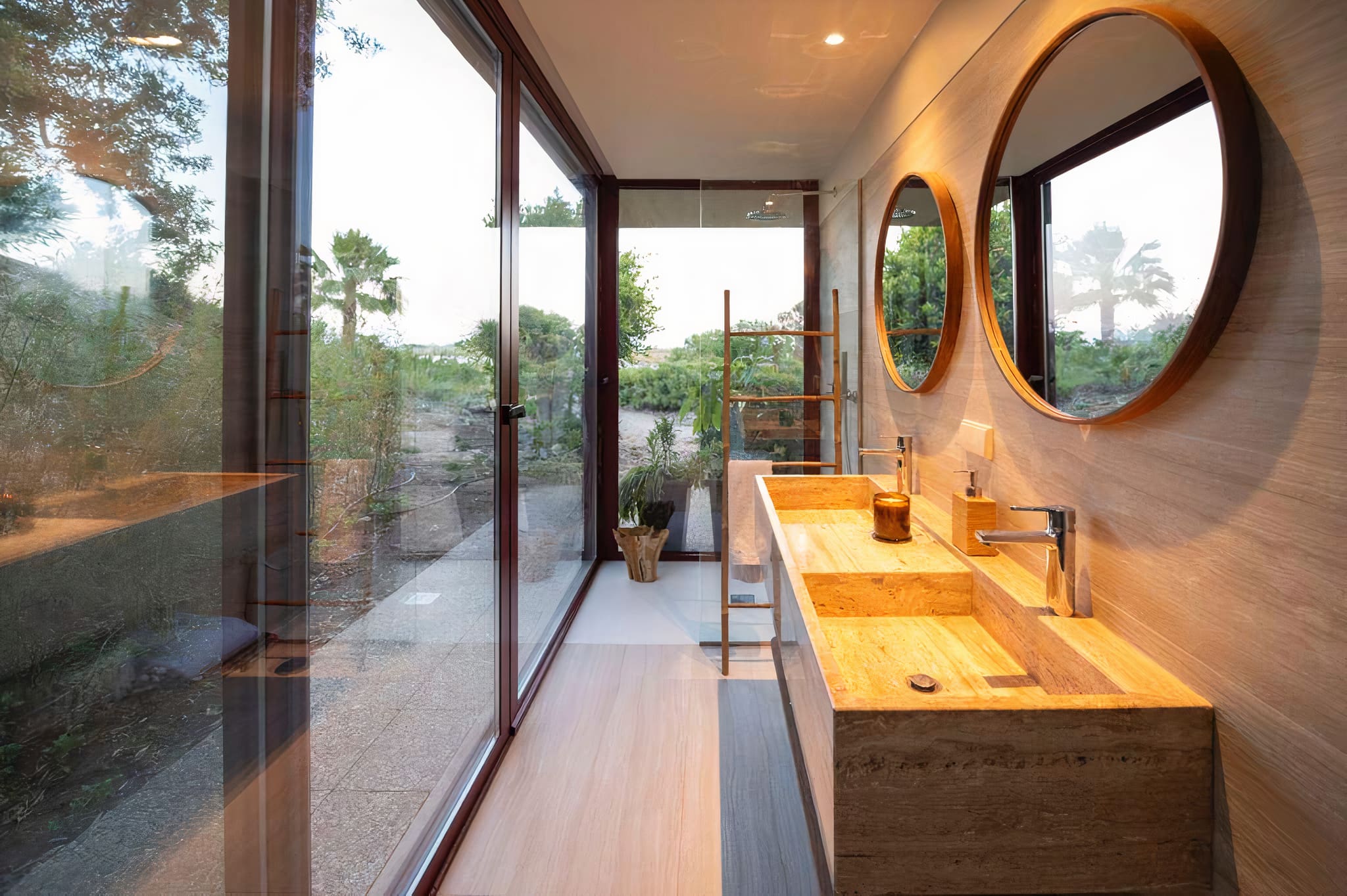 Step into a world of contemporary design and comfort as you enter this stunning apartment. The open-plan living area features expansive glass facades, allowing natural light to flood the space and offering panoramic views of the surrounding lagoon. The tasteful decor echoes the natural environment, with earthy tones and high-quality finishes. A fully equipped kitchen, complete with modern appliances, ensures a seamless culinary experience. Each of the four bedrooms is a sanctuary of relaxation, featuring en-suite bathrooms and plush furnishings, perfect for unwinding after a day of exploration.