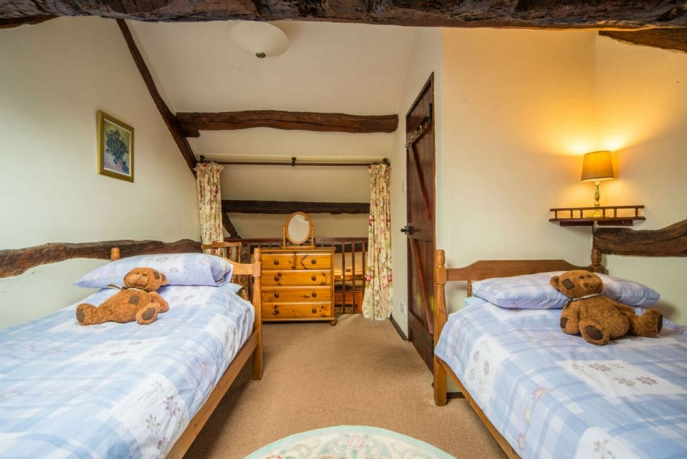 Step inside to find a welcoming and spacious interior designed to accommodate up to nine guests. The apartment features four well-appointed bedrooms, including a ground floor bedroom and bathroom, ideal for those with limited mobility. The living area is adorned with ancient wooden beams and simple furnishings, creating a cozy and inviting atmosphere. A galleried bedroom upstairs adds a unique charm, with a curtain for added privacy. The modern kitchen is fully equipped, making meal preparation a breeze.