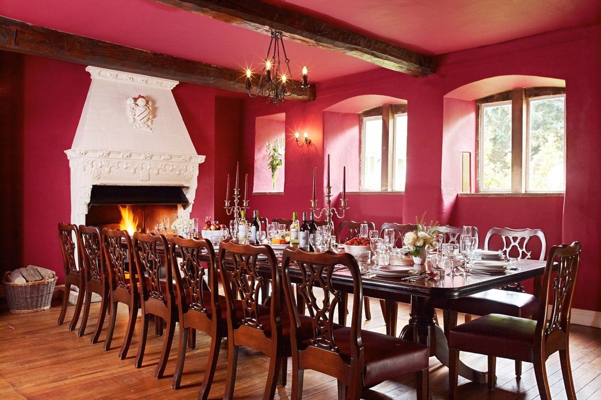 As you step inside, you’ll find a beautifully restored interior that blends historical charm with contemporary luxury. The apartment features nine exquisite bedrooms, each with its own en-suite bathroom, ensuring privacy for all guests. The spacious living areas boast elegant furnishings, with a main lounge providing a cozy setting complete with a grand fireplace. For music lovers, the Victorian-style second lounge features an upright piano, while the casual family room opens out to the patio, perfect for socializing. A billiard room adds a touch of classic entertainment, and the medieval-style dining room is ideal for formal dinners, with its hearth-like fireplace and rich decor.