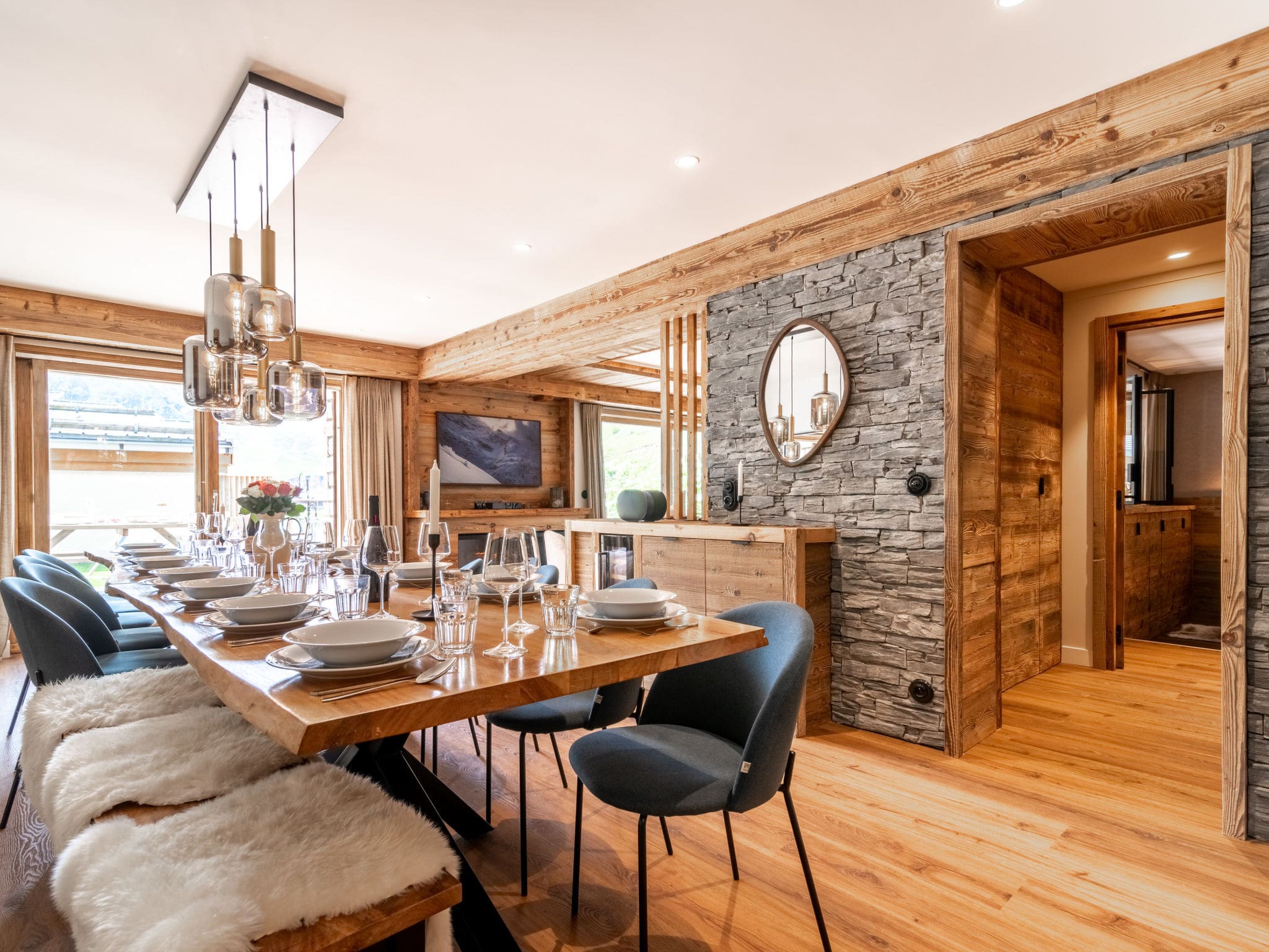 This luxury ski chalet Tignes offers an exceptional alpine retreat in one of France’s most prestigious mountain destinations. Perched on the second floor of the exclusive Le Canvolan residence, this beautifully renovated 183-square-meter apartment combines contemporary luxury with traditional alpine charm, accommodating up to 14 guests across four thoughtfully designed bedrooms.