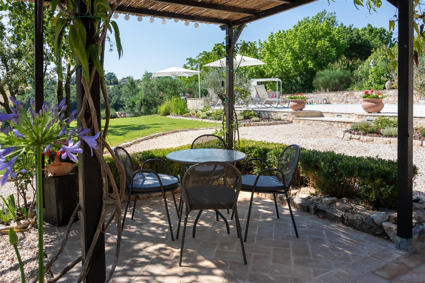 Surrounded by lush olive groves and Mediterranean herbs, the outdoor area is a haven of tranquility. Relax by the turquoise swimming pool, available from late April to early October, or enjoy alfresco dining in the rustic summer kitchen. The expansive gardens offer sun loungers, shaded spots, and a play area for children, making it a family-friendly oasis.