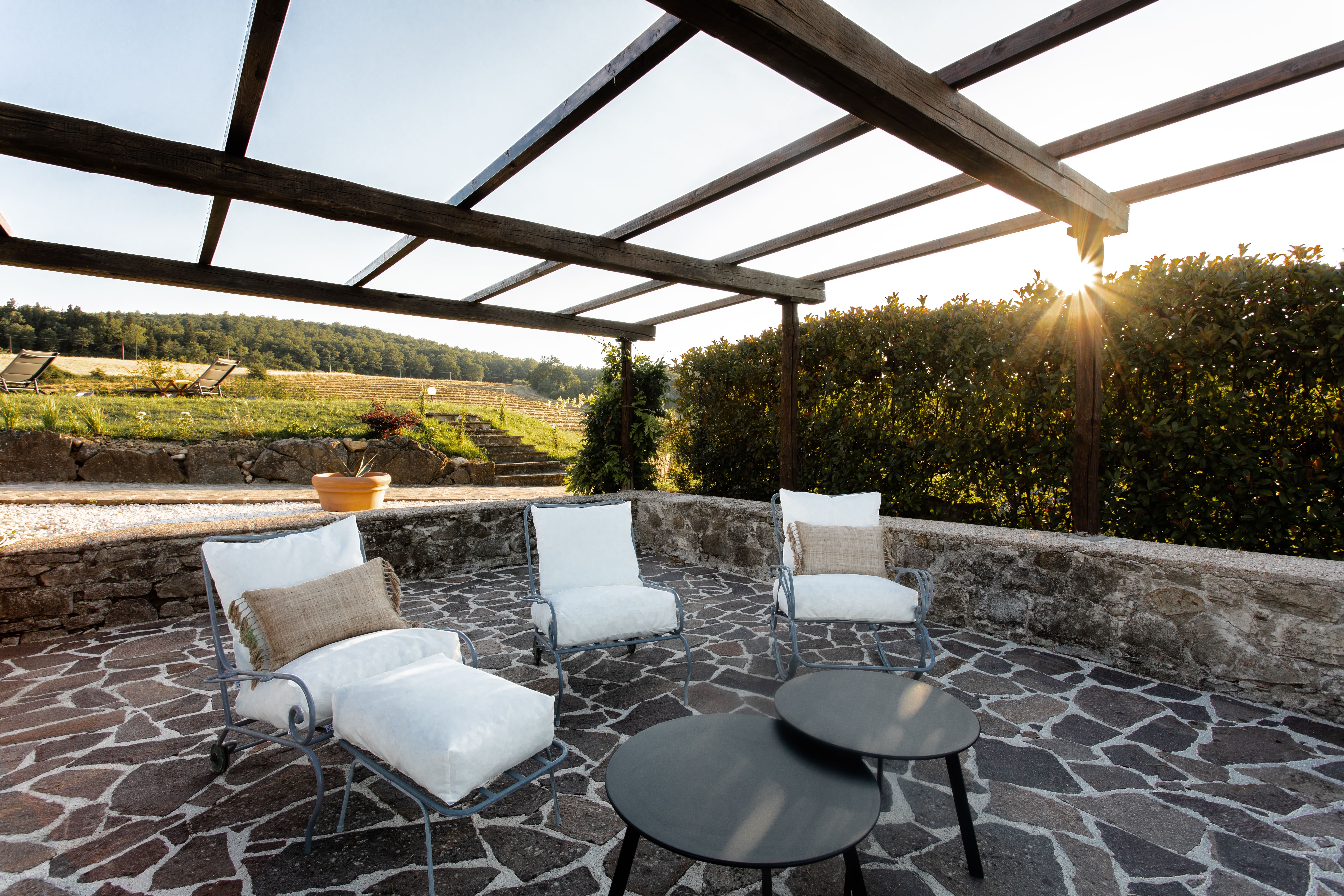 Embrace the tranquility of the Umbria countryside from the apartment’s expansive outdoor spaces. The saltwater swimming pool offers a refreshing escape, while the surrounding terraces provide idyllic spots for sunbathing and alfresco dining. The gardens, filled with olive groves and fruit trees, create a peaceful oasis where you can unwind and enjoy the stunning views of the Todi skyline.