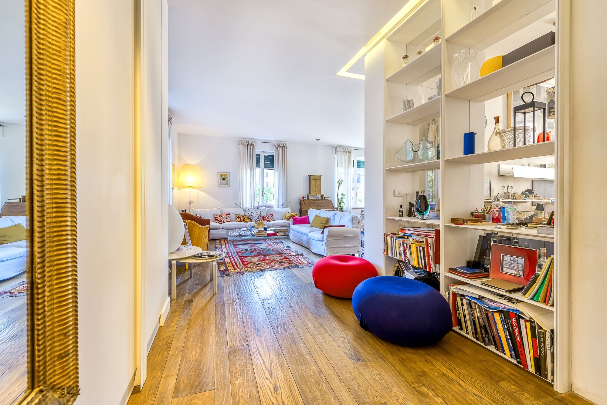 Experience the charm of Rome with this luxury apartment rental in Trastevere. Nestled in a vibrant neighborhood, this exquisite two-bedroom apartment offers a perfect blend of modern comfort and historic allure. From its rooftop terraces, enjoy panoramic views of the iconic Janiculum Hill and the charming streets of Trastevere.