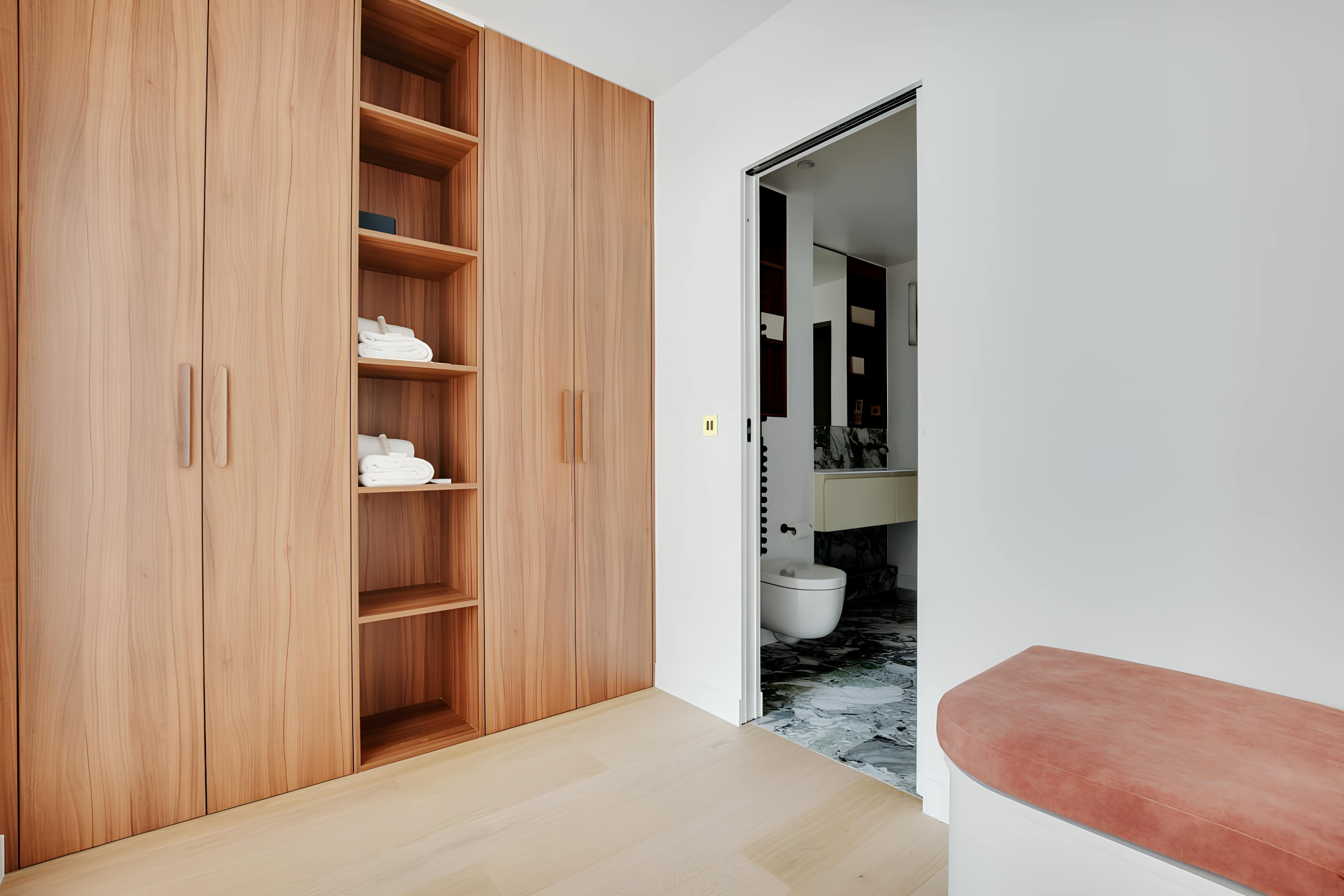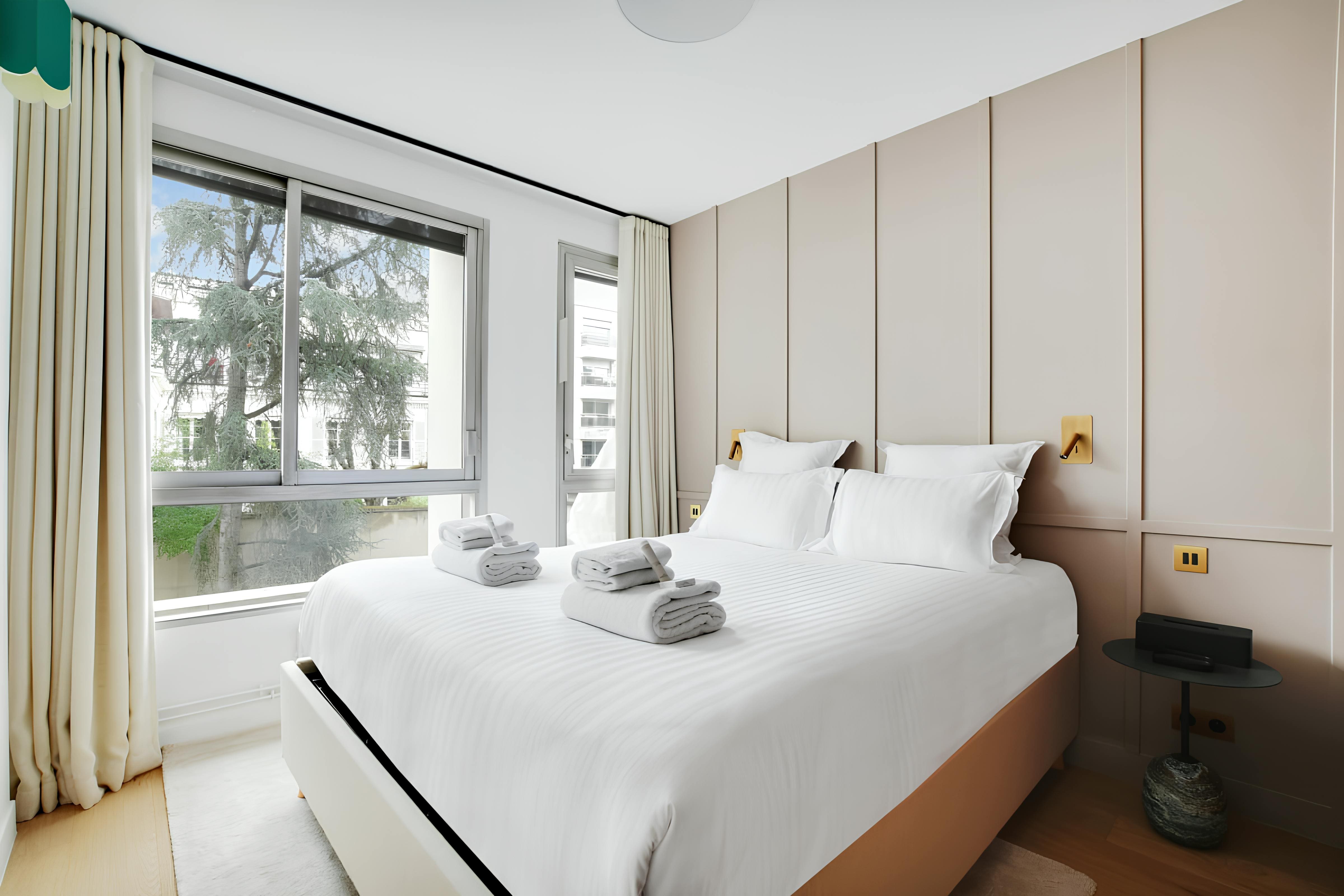 While the apartment itself is a sanctuary of calm, its location is unbeatable. Just a short stroll from the apartment, the vibrant streets of Paris unfold, offering views of the Eiffel Tower and access to charming cafes and upscale boutiques. While there is no private garden or terrace, the city’s lush parks and picturesque riverbanks provide ample opportunities for outdoor enjoyment.