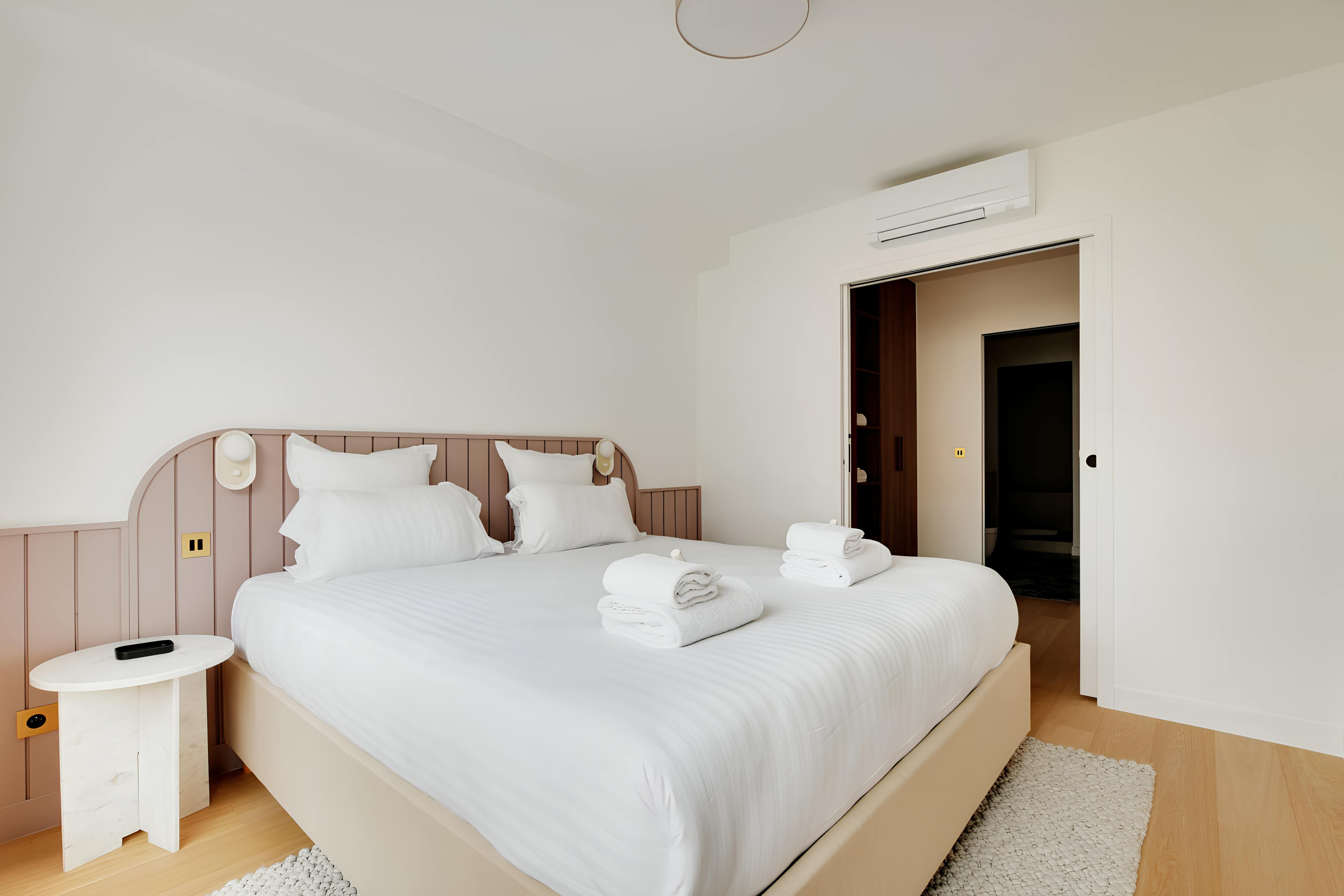 The apartment accommodates up to eight guests with its three bedrooms and additional sofa bed in the living room. Each bedroom has its own bathroom, providing privacy and convenience. While there is no dedicated parking, the central location offers easy access to public transport options. For more options, browse our luxury villa rentals in France.