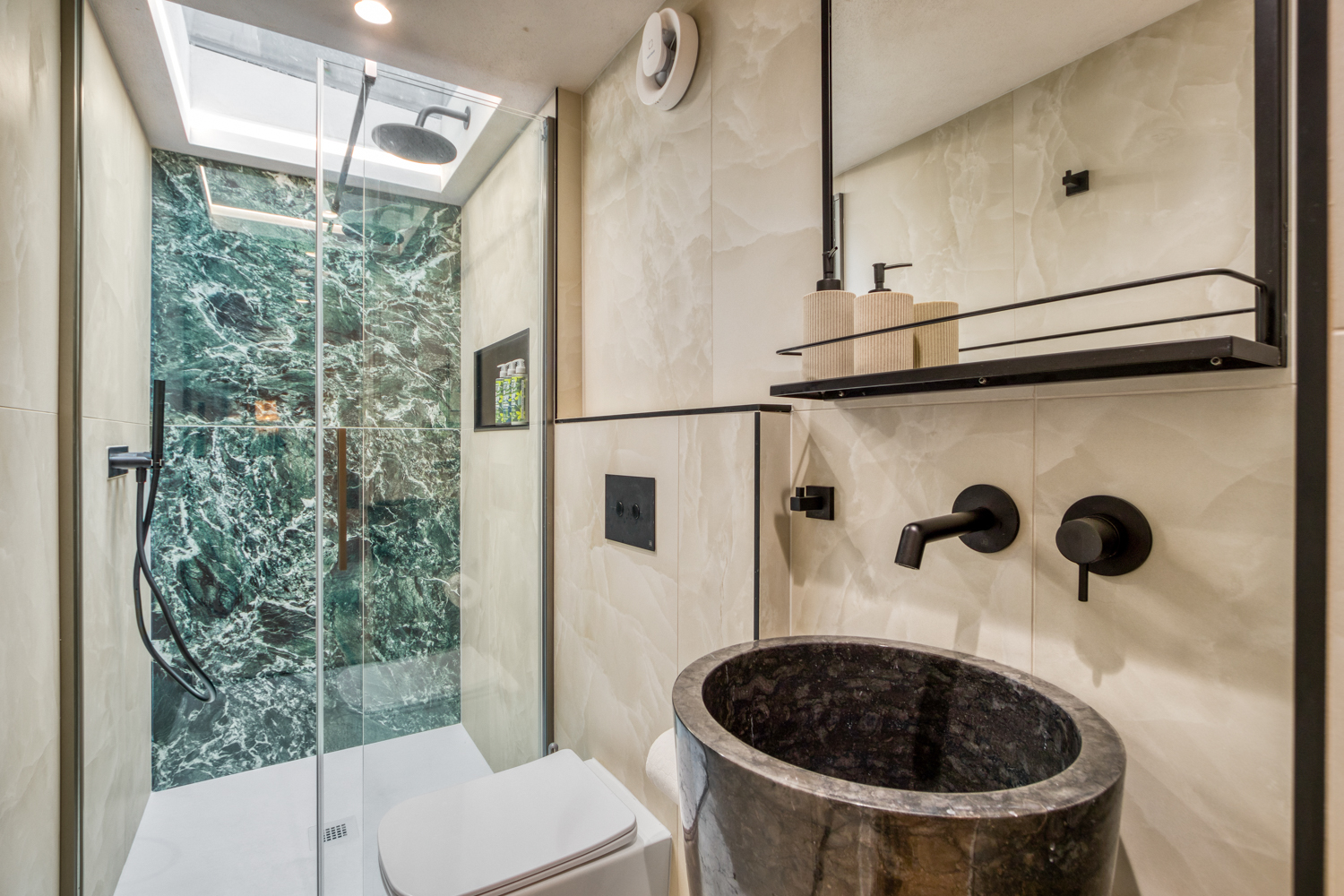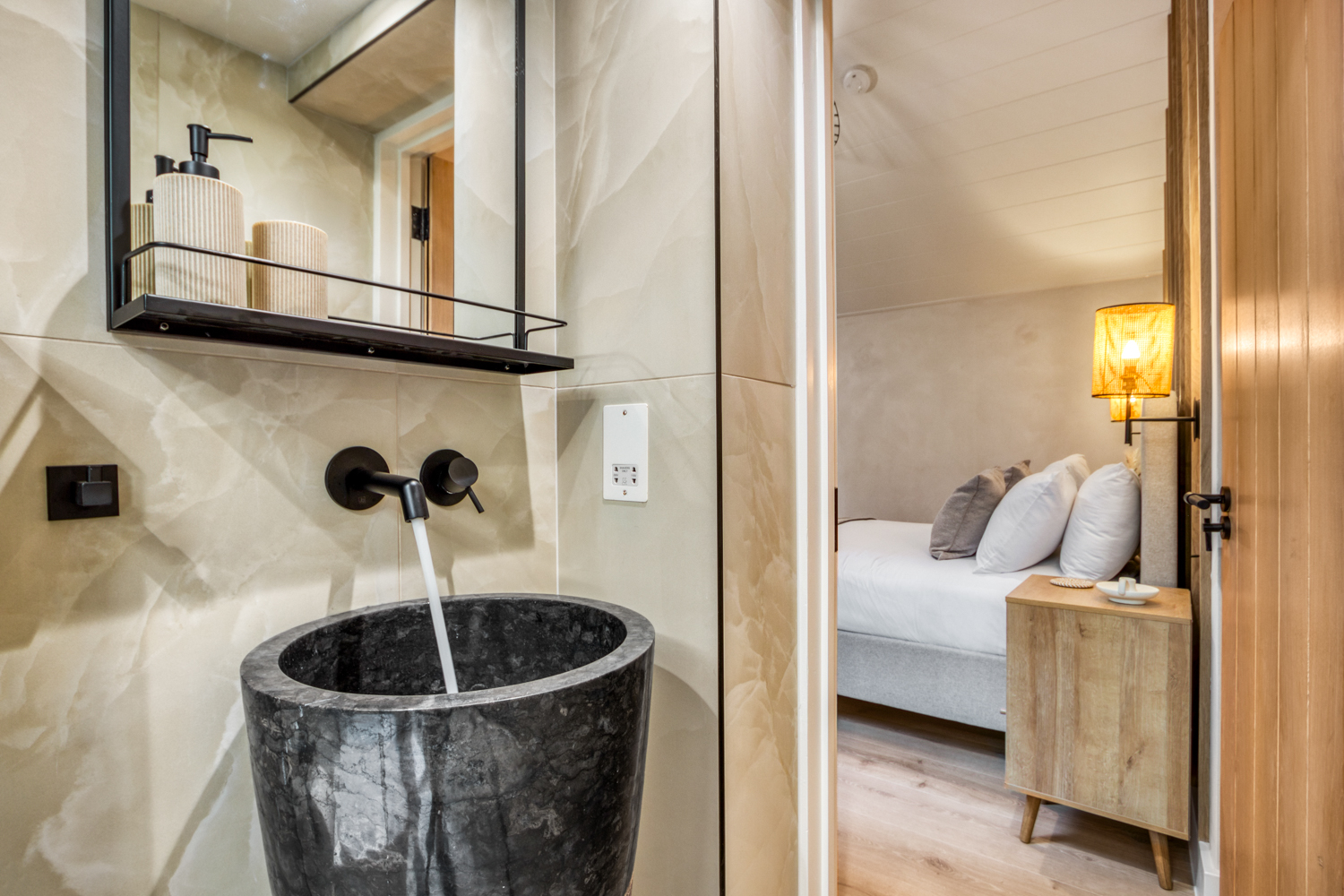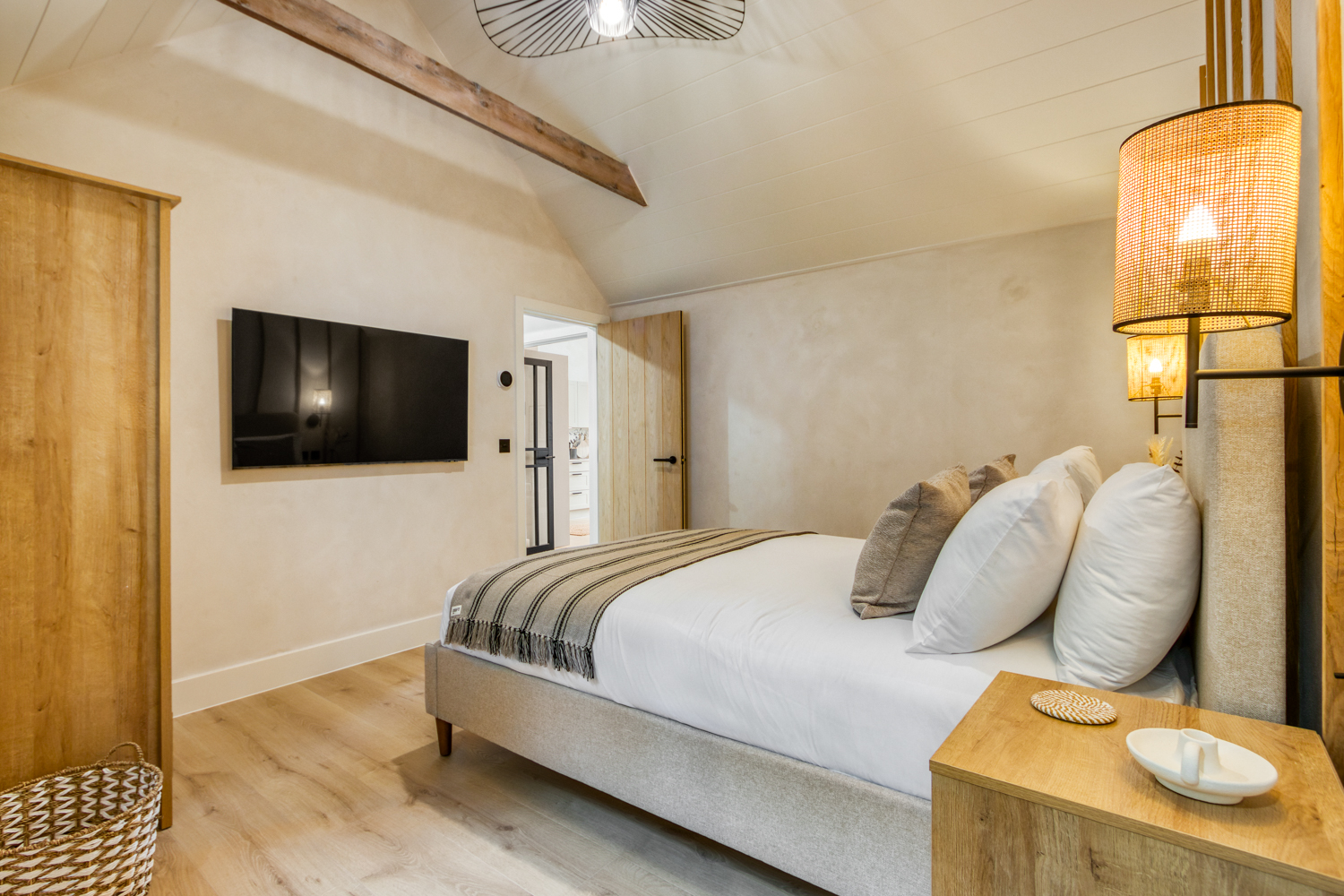 – Master bedroom with king-sized bed and ensuite bathroom with walk in shower and WC