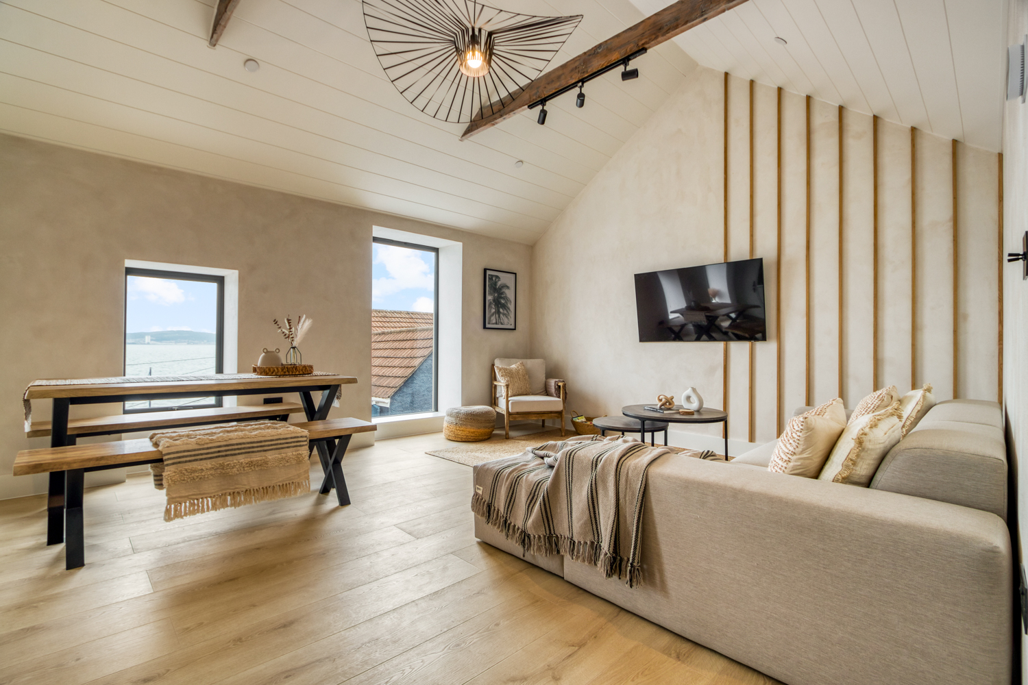 This luxurious second-floor flat in the heart of Mumbles offers a stylish and comfortable retreat for up to five guests. Perfectly situated near the stunning Gower Peninsula, it boasts breathtaking sea views, making it an ideal base for exploring the coast or simply relaxing by the water. With its modern interiors and thoughtful amenities, this property ensures a truly memorable stay. Inside, Glas Apartment features two beautifully appointed bedrooms, an open-plan living and dining area, and a fully equipped kitchen, providing everything you need for a seamless seaside getaway. Large windows invite natural light while framing the spectacular views, creating a bright and welcoming atmosphere. The flat’s design perfectly balances contemporary elegance with cosy touches, ideal for couples, families, or friends. Step outside, and you’re just ten minutes from the heart of charming Mumbles village. Explore its array of boutique shops, cafés, and art galleries, or savor a meal at one of the many excellent bars and restaurants nearby. The flat’s convenient location offers easy access to the sandy beaches of the Gower, renowned for their beauty and tranquility. Whether you’re seeking adventure or relaxation, Glas Apartment provides the perfect coastal escape.
