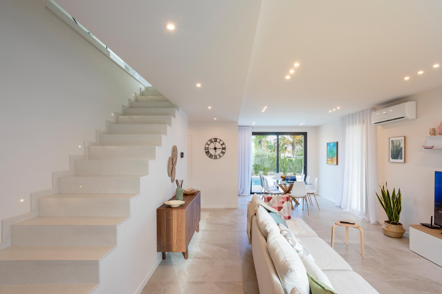 Step inside and be greeted by an abundance of natural light streaming through large windows, highlighting the apartment’s sleek and contemporary design. The open-plan living area is a haven of comfort, featuring plush seating and a state-of-the-art kitchen equipped with all the modern conveniences. With four beautifully appointed bedrooms, including one with an en-suite bathroom, this apartment comfortably accommodates up to eight guests. Two of the bedrooms and an additional bathroom are conveniently located on the ground floor, ideal for guests who prefer to avoid stairs.