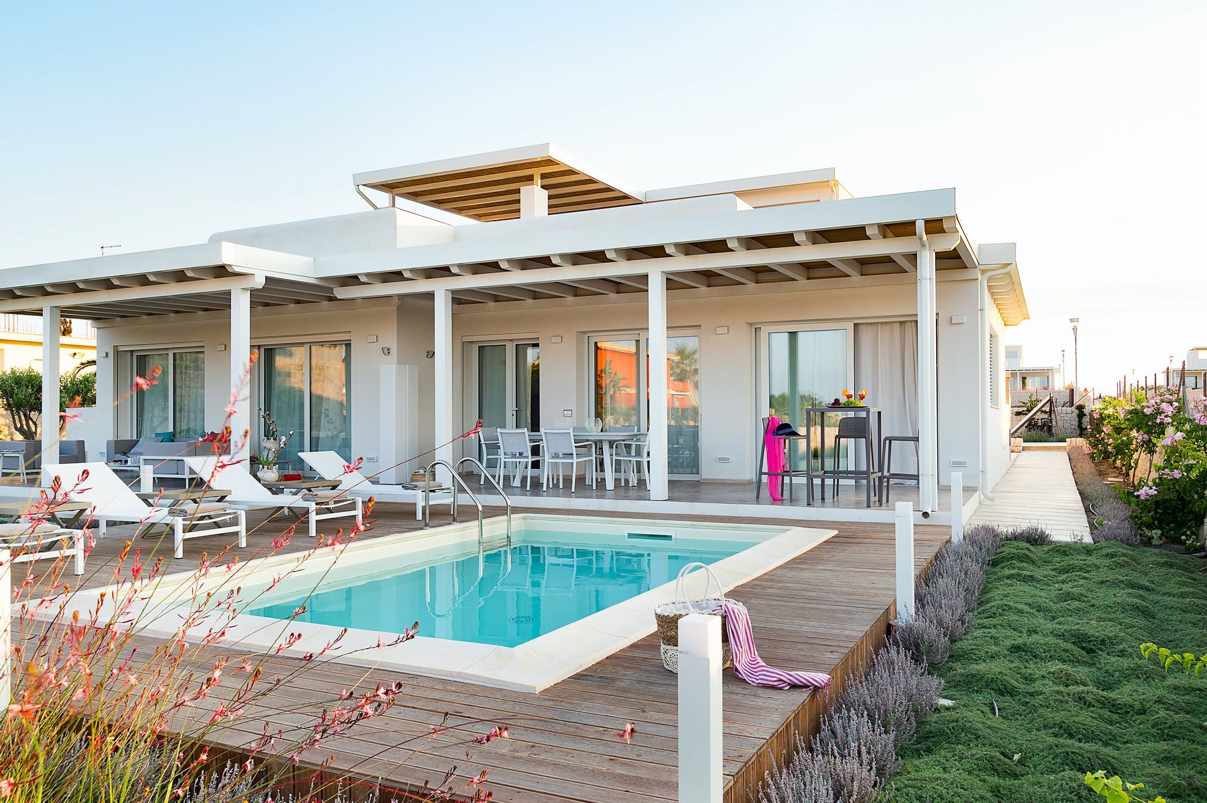Outside, the private pool invites you for a refreshing dip while enjoying the breathtaking views of the Sicilian coast. The terrace is perfect for alfresco dining or lounging in the sun, surrounded by lush gardens that enhance the tranquil atmosphere. With the beach nearby, guests can easily indulge in sun, sea, and sand.