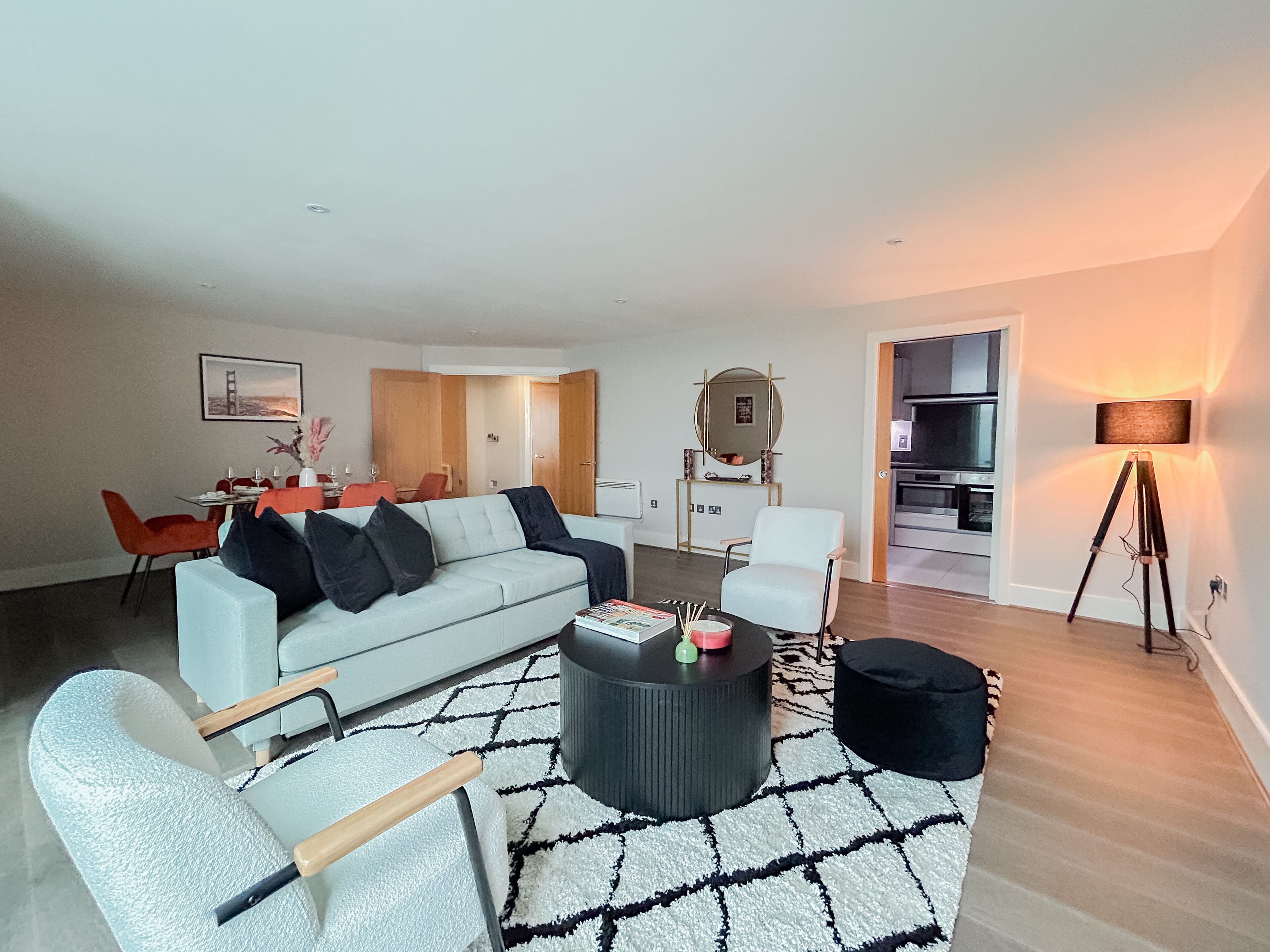 Accommodating up to six guests, this apartment has two bedrooms and two en-suite bathrooms, plus a convenient separate toilet and utility room. Note that two guests will sleep on the sofa bed in the living area. For more options, browse our luxury villa rentals in United Kingdom.