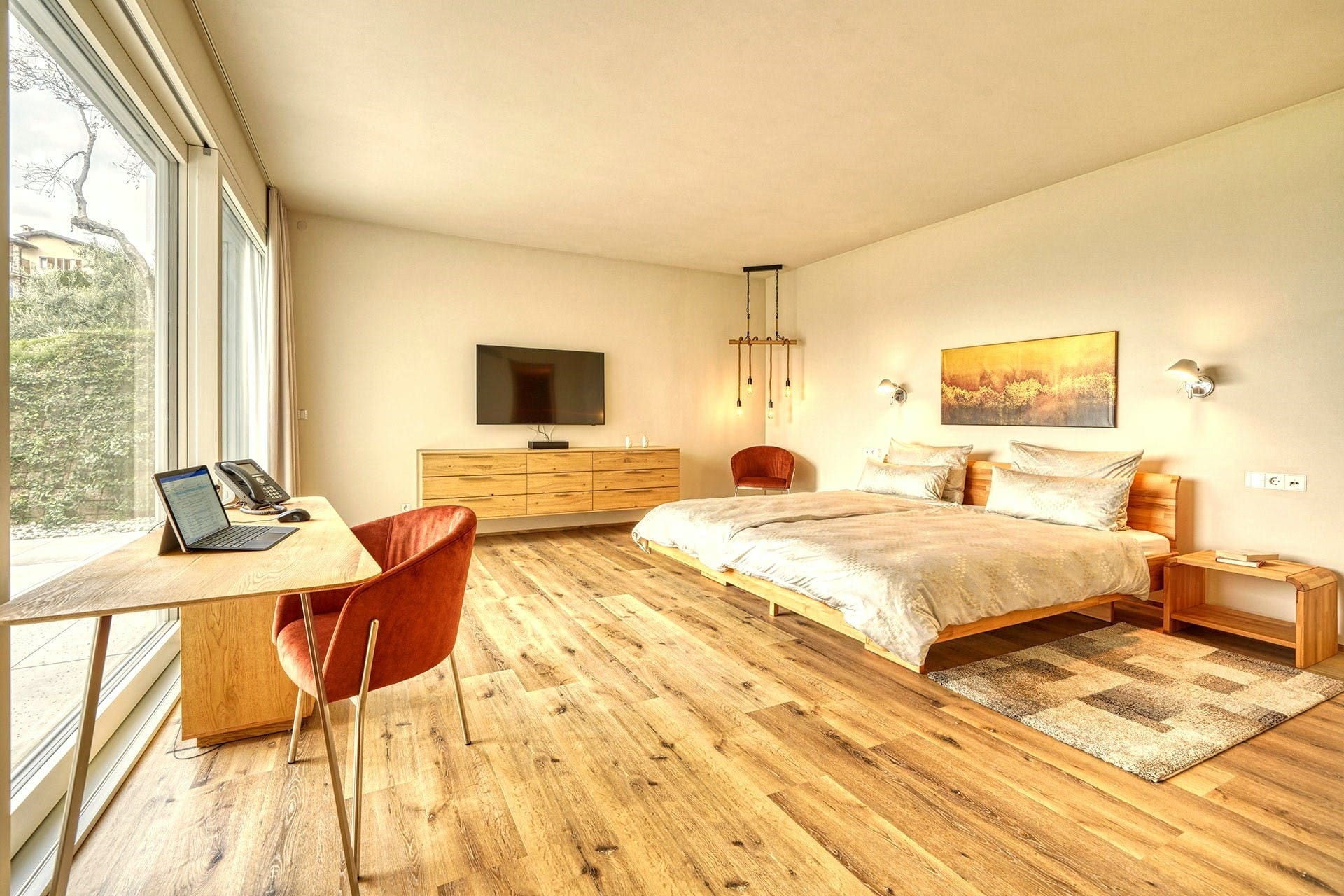 Outside, the lush gardens invite you to unwind and relax. A newly added hot tub in the garden enhances the luxurious experience, providing a perfect spot to soak and admire the natural beauty surrounding you. With Lake Garda just a stone’s throw away, the outdoor spaces offer breathtaking vistas and ample opportunities for al fresco dining and leisure.