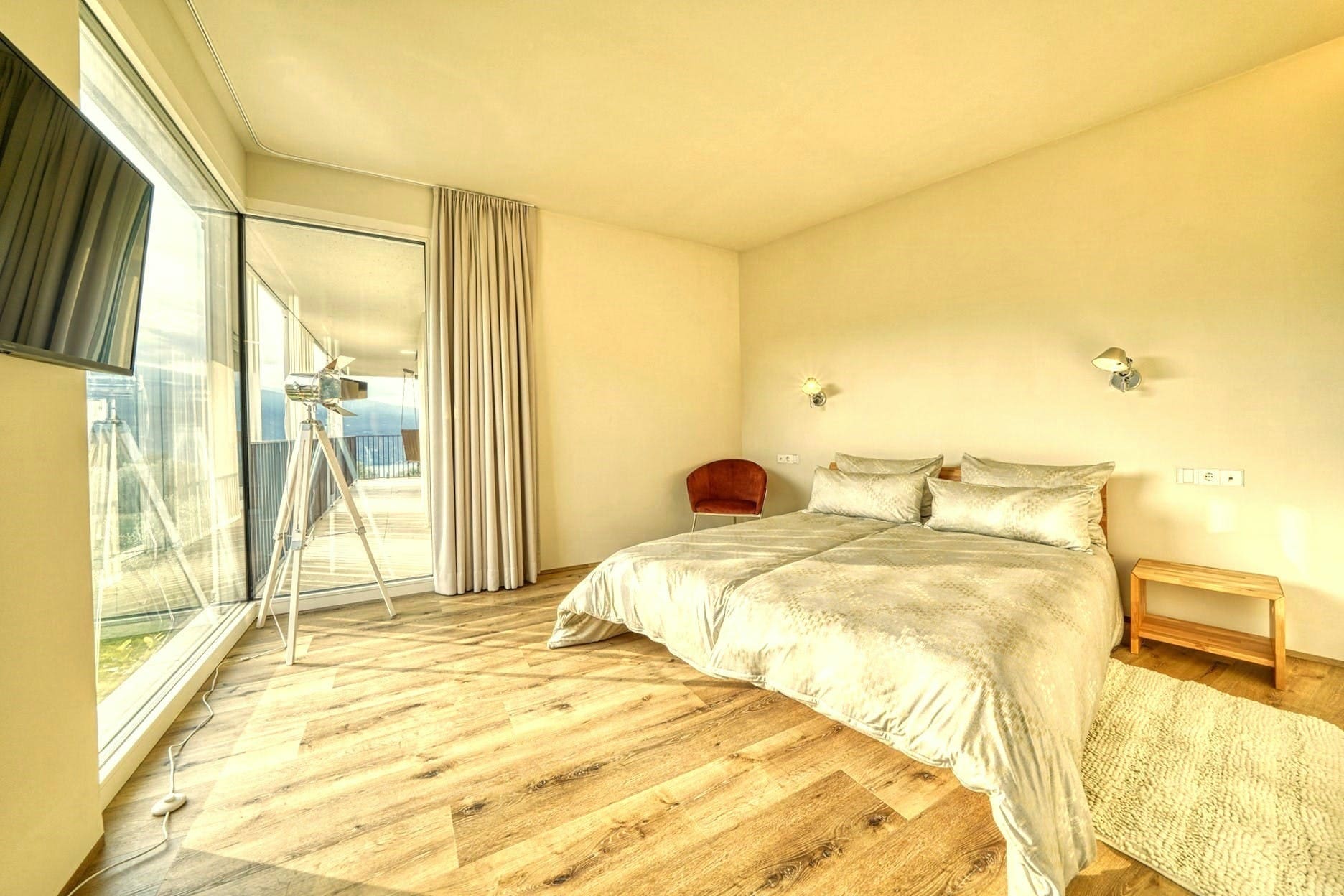 A: The apartment includes a hot tub, air conditioning, and Wi-Fi, among other luxury amenities.