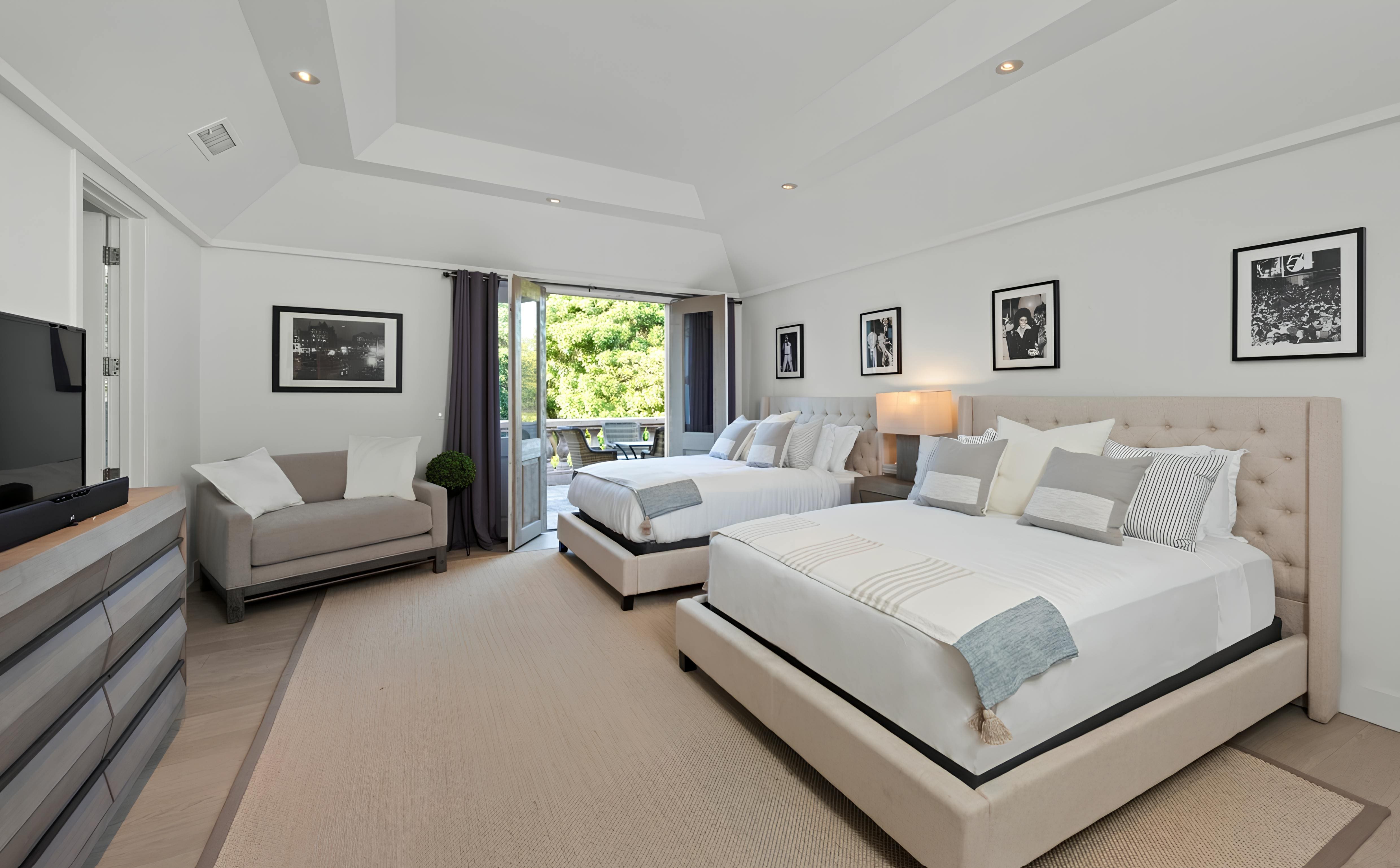 The interior of this West Hollywood haven is a masterpiece of modern design, boasting six spacious bedrooms and ten exquisite bathrooms. Each room exudes luxury, with plush furnishings and high-end amenities. The living areas are designed to inspire relaxation, featuring open-plan spaces that seamlessly connect the indoors with the outdoors. A state-of-the-art kitchen awaits culinary enthusiasts, while the elegant dining room is perfect for memorable gatherings. Additional highlights include a recording studio, a hair salon, and a games room, ensuring entertainment for all.