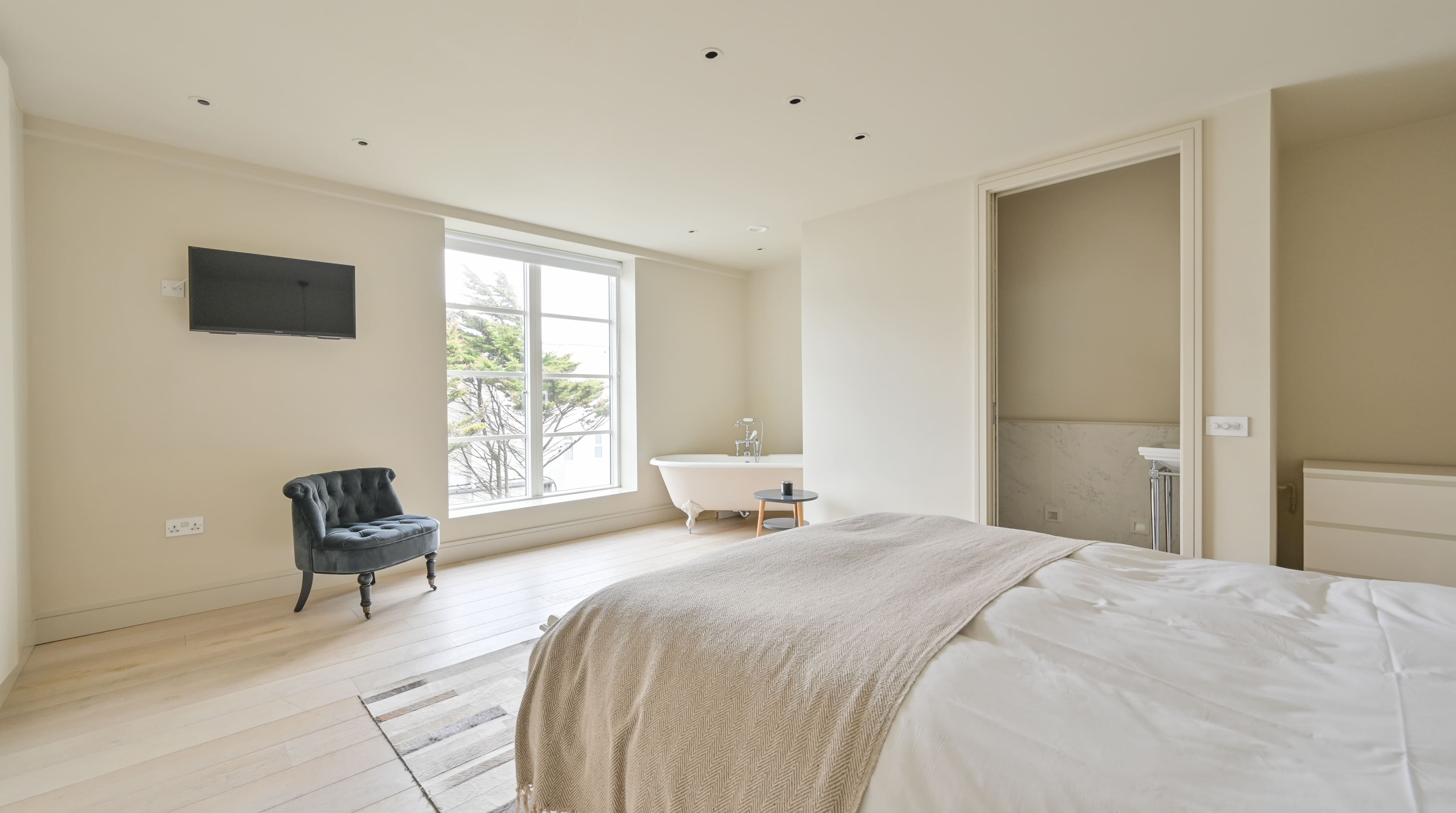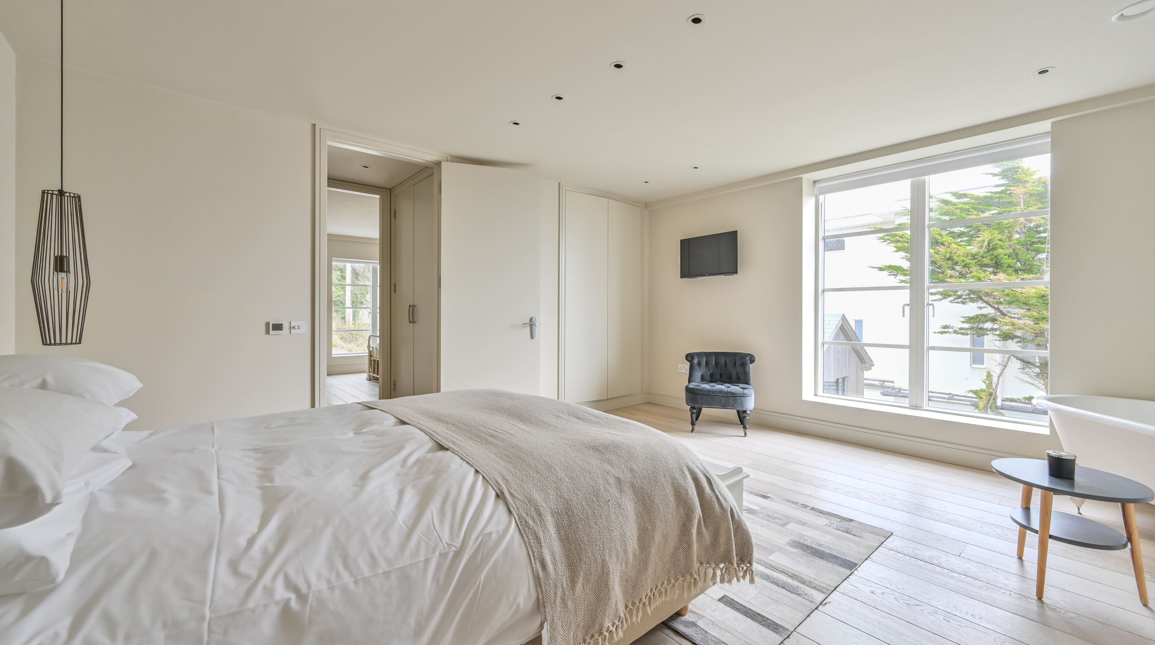 The apartment comfortably accommodates up to six guests with three bedrooms and two bathrooms. It includes off-road parking for one car and key card access for security. Located on the first floor, it is part of a luxury aparthotel complex with shared facilities like an outdoor shower and storage for surf equipment. Browse our luxury villa rentals in United Kingdom for more properties.