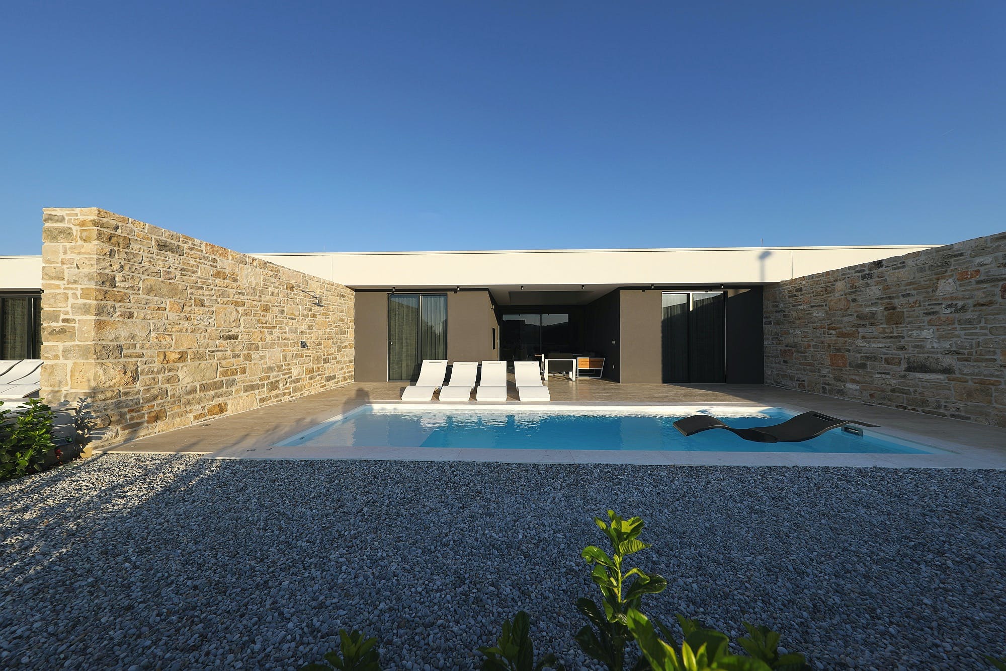 The outdoor spaces are equally impressive, featuring a private swimming pool framed by a sun-kissed terrace. Guests can enjoy alfresco dining with panoramic views of the Adriatic Sea. The apartment’s beachfront location offers direct access to the pristine beaches of Zadar, making it a paradise for sun-seekers and water lovers.