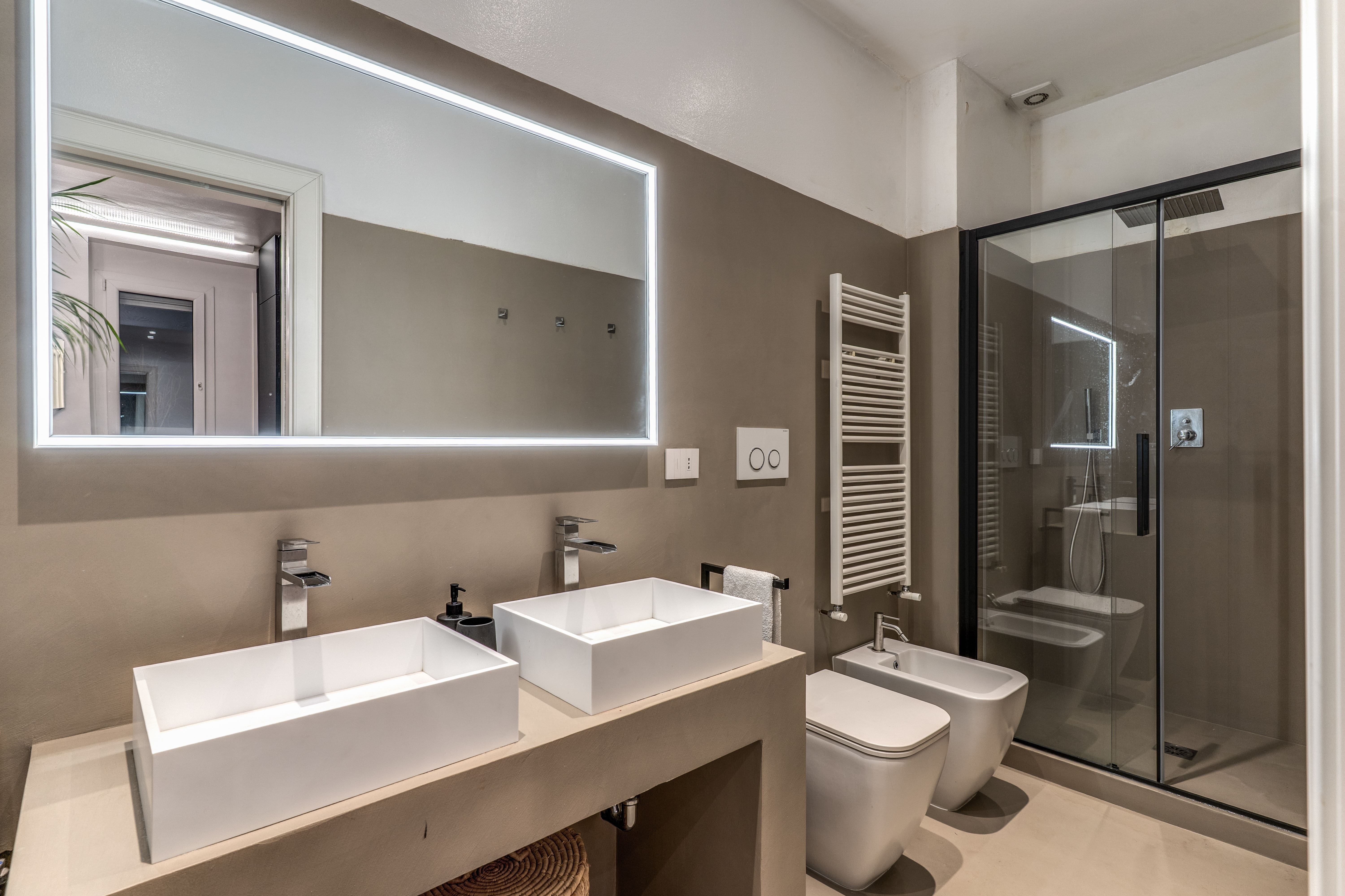 Accommodating up to eight guests, the penthouse features four bathrooms, ensuring privacy and convenience. Pets are welcome, with two well-behaved dogs allowed. For those planning events or photoshoots, the property is available for small gatherings with prior arrangement. Explore more options in our luxury villa rentals in Italy.
