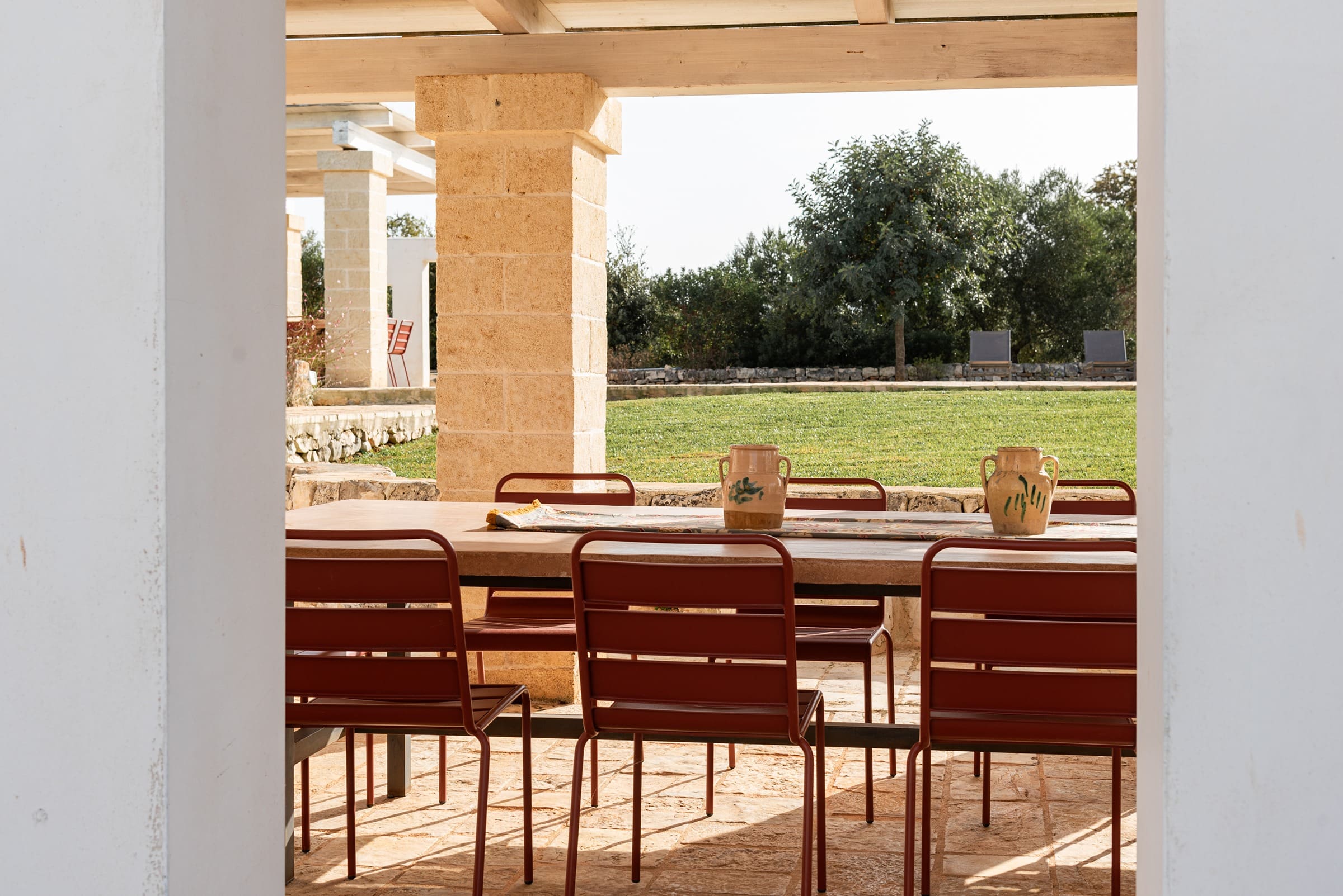 Surrounded by olive groves, the outdoor area is a serene haven. Enjoy sun-soaked terraces that lead to a pristine swimming pool, perfect for a refreshing dip. Although unfenced, the pool provides a luxurious spot for relaxation, with scenic views stretching across the Apulian landscape. Outdoor dining is a delight here, allowing guests to savor local delicacies in a picturesque setting.