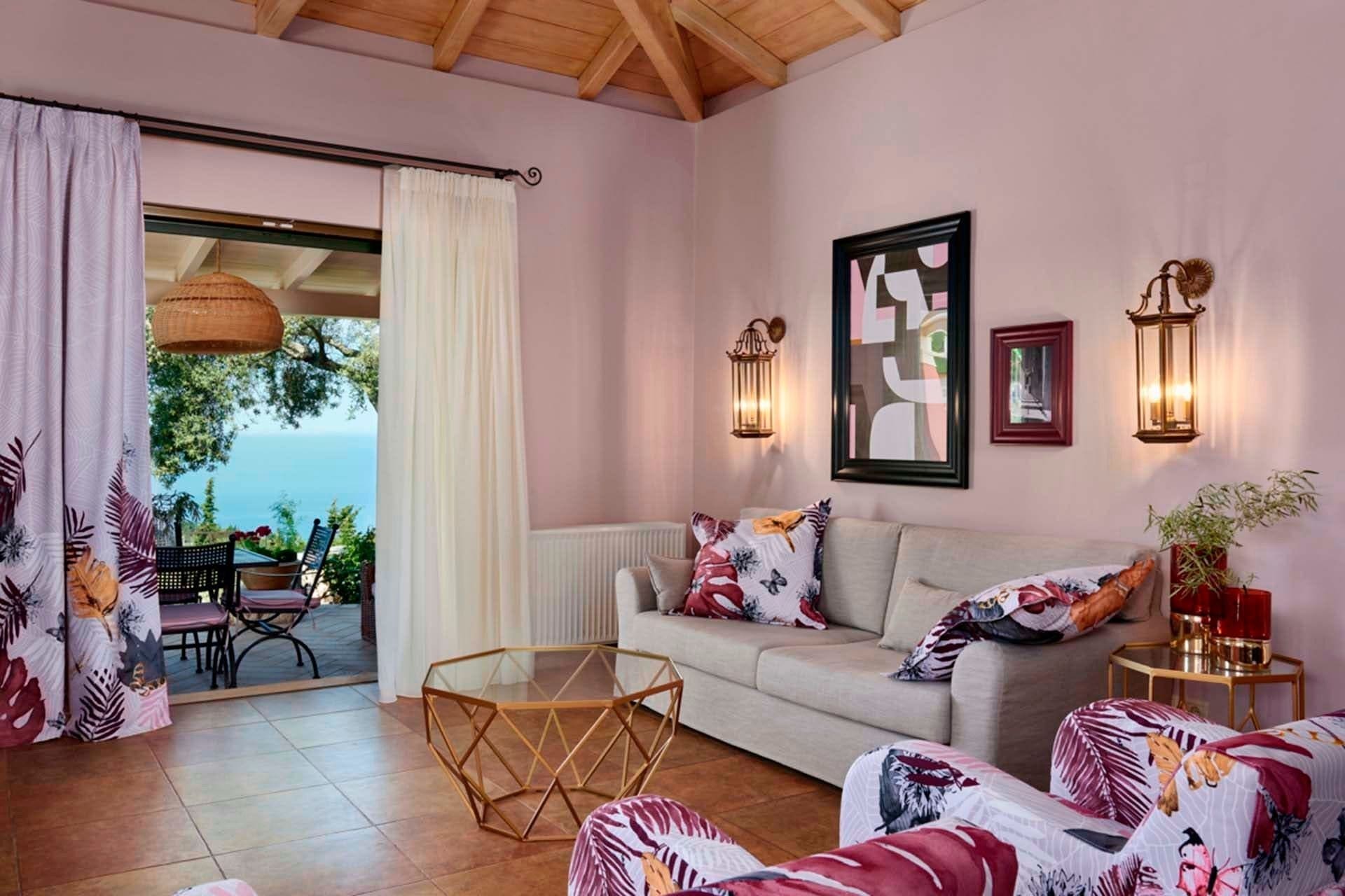 A: The infinity pool offers unparalleled views of the Ionian Sea, creating a seamless horizon effect.