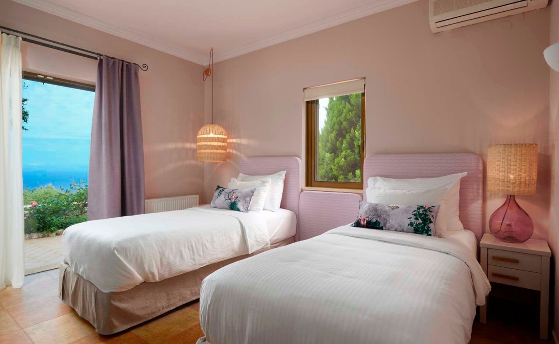 Accommodating up to six guests, this villa features three bedrooms and three bathrooms. Guests benefit from two free parking spots, and the unpaved road to the villa adds a touch of adventure. While pets are not allowed, the villa’s family-friendly amenities ensure a comfortable stay. Browse our luxury villa rentals in Greece for more options.
